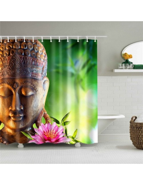 Krajobraz wiejski Creek kamień lotos budda zasłona prysznicowa kurtyna łazienkowa Frabic wodoodporna poliestrowa kurtyna łazienkowa z haczykami