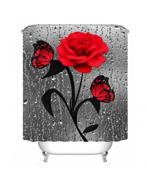 Czerwona róża i motyl łazienka mata antypoślizgowa zestaw trwały wodoodporny prysznic zestaw zasłon mata podłogowa pokrywka toaleta pokrywa maty do kąpieli dywaniki