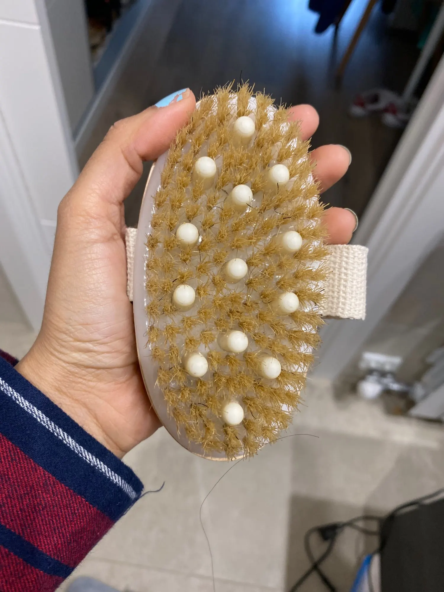 Aby dbać o szczotka do ciała, ważne jest, aby wytrzeć wysuszoną szczotka do ciała za każdym razem po użyciu i powiesić ją w suchym miejscu i pozostawić do wyschnięcia na powietrzu na więcej.