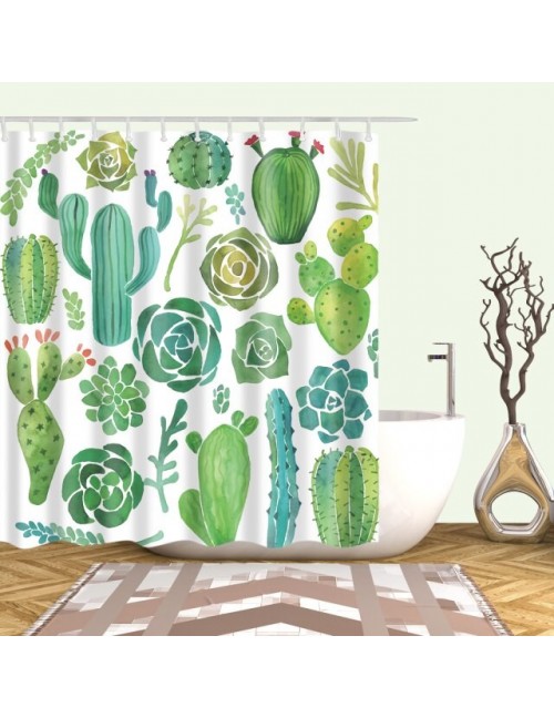 Tropikalny zielony liść roślinny palmowy kaktus zasłona prysznicowa kurtyna łazienkowa Frabic wodoodporna poliestrowa kurtyna łazienkowa z haczykami