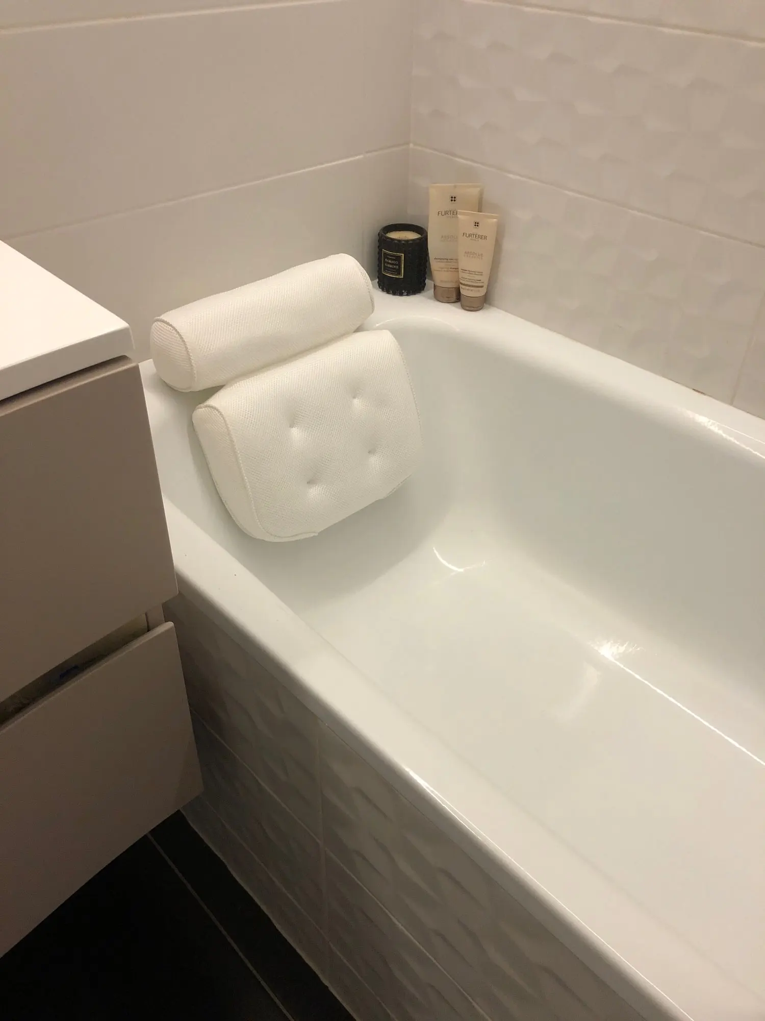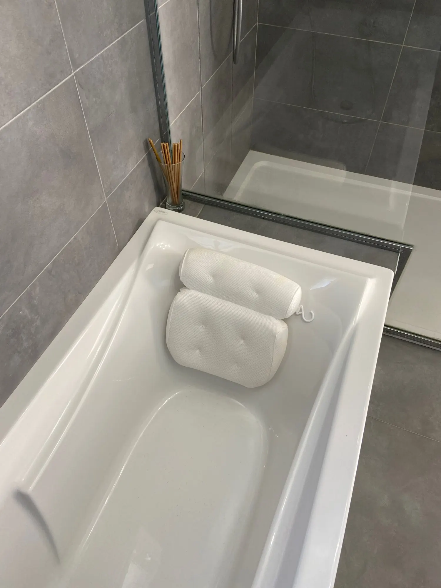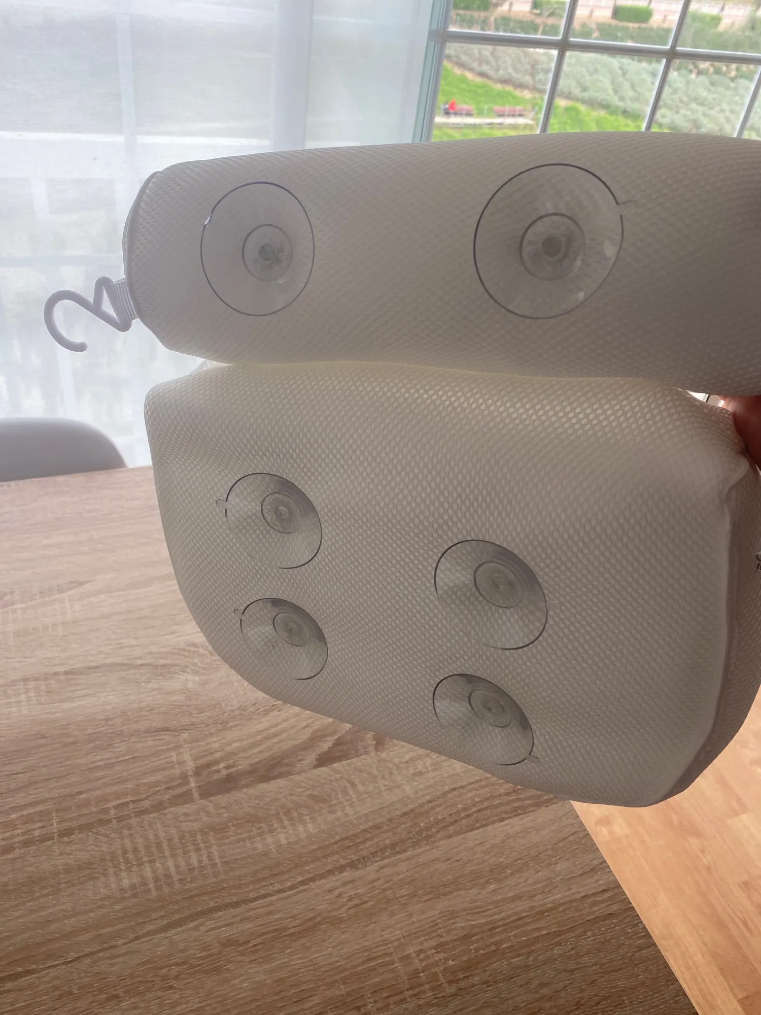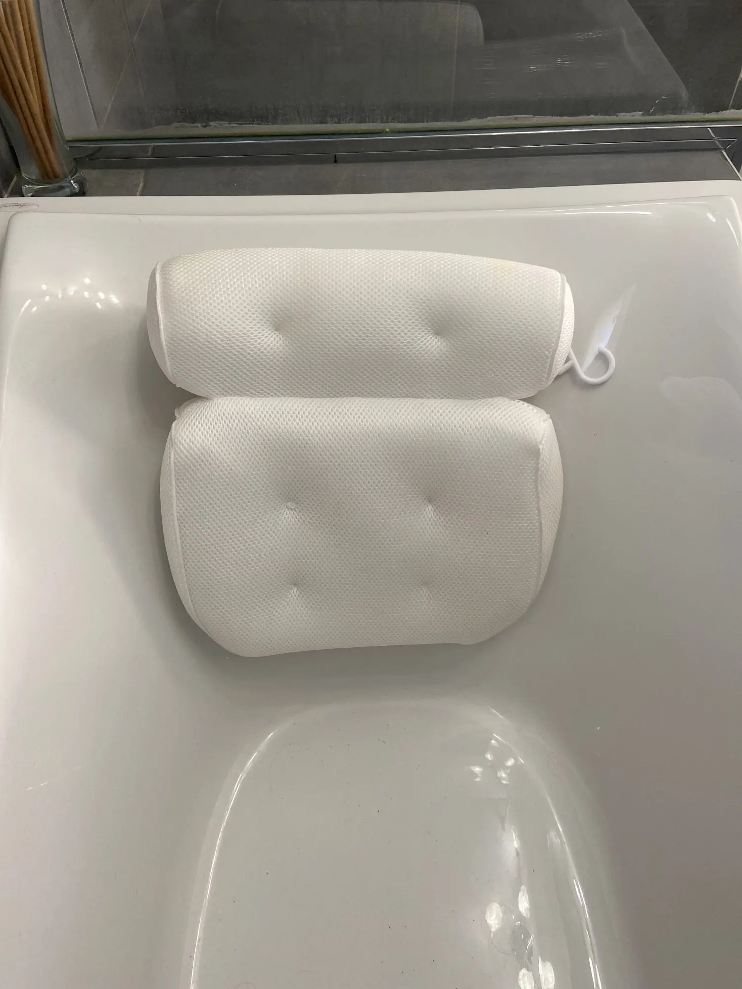 Dane techniczne: Nazwa przedmiotu: poduszka do kąpieli Kolor: biały Materiał: poliester Rozmiar: około 35*33*7cm
