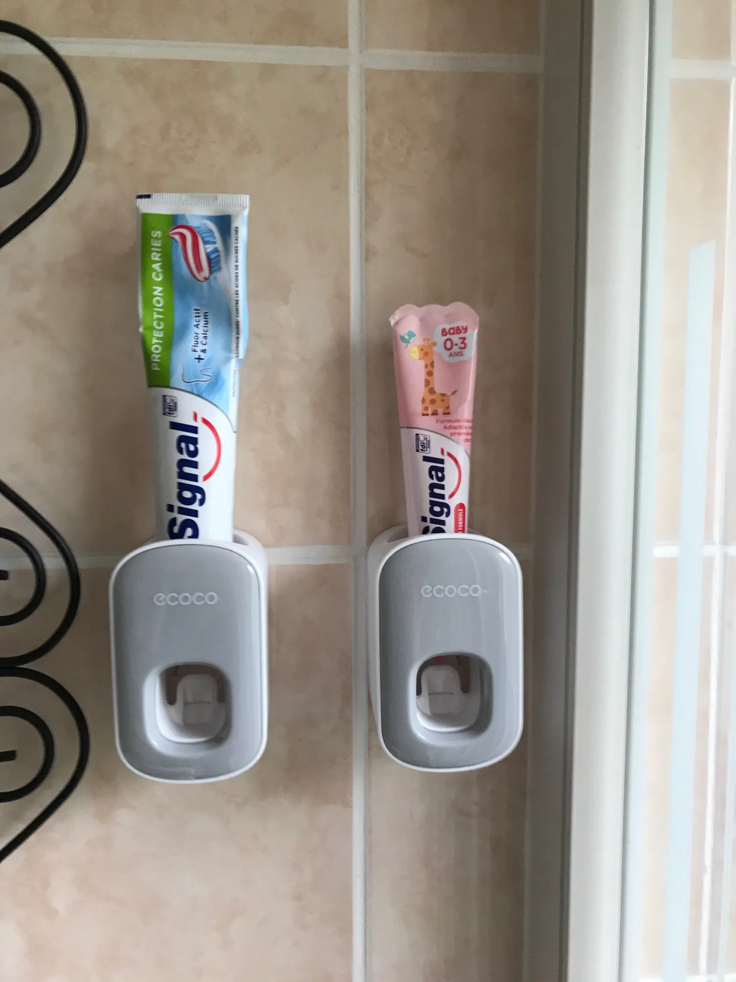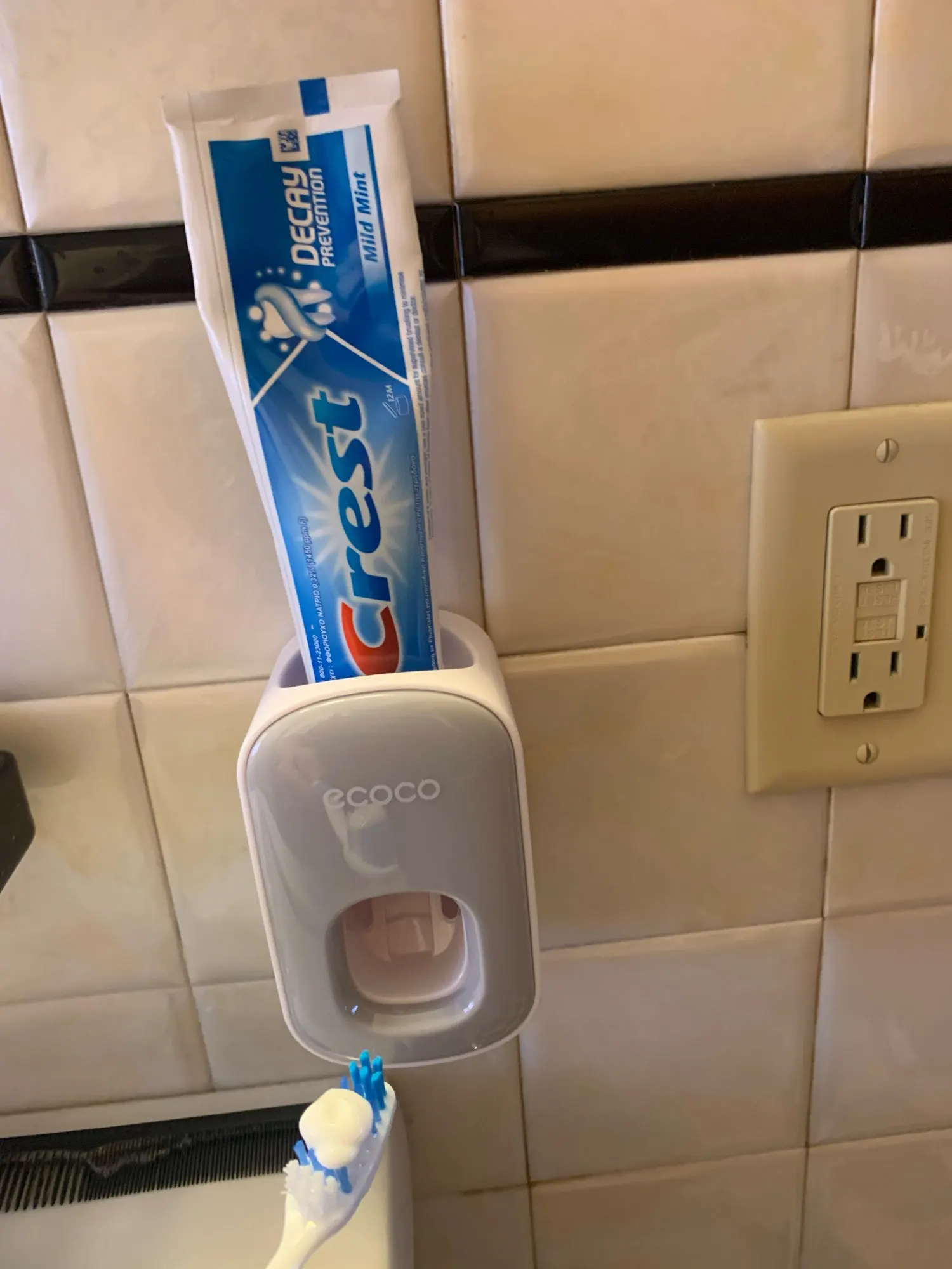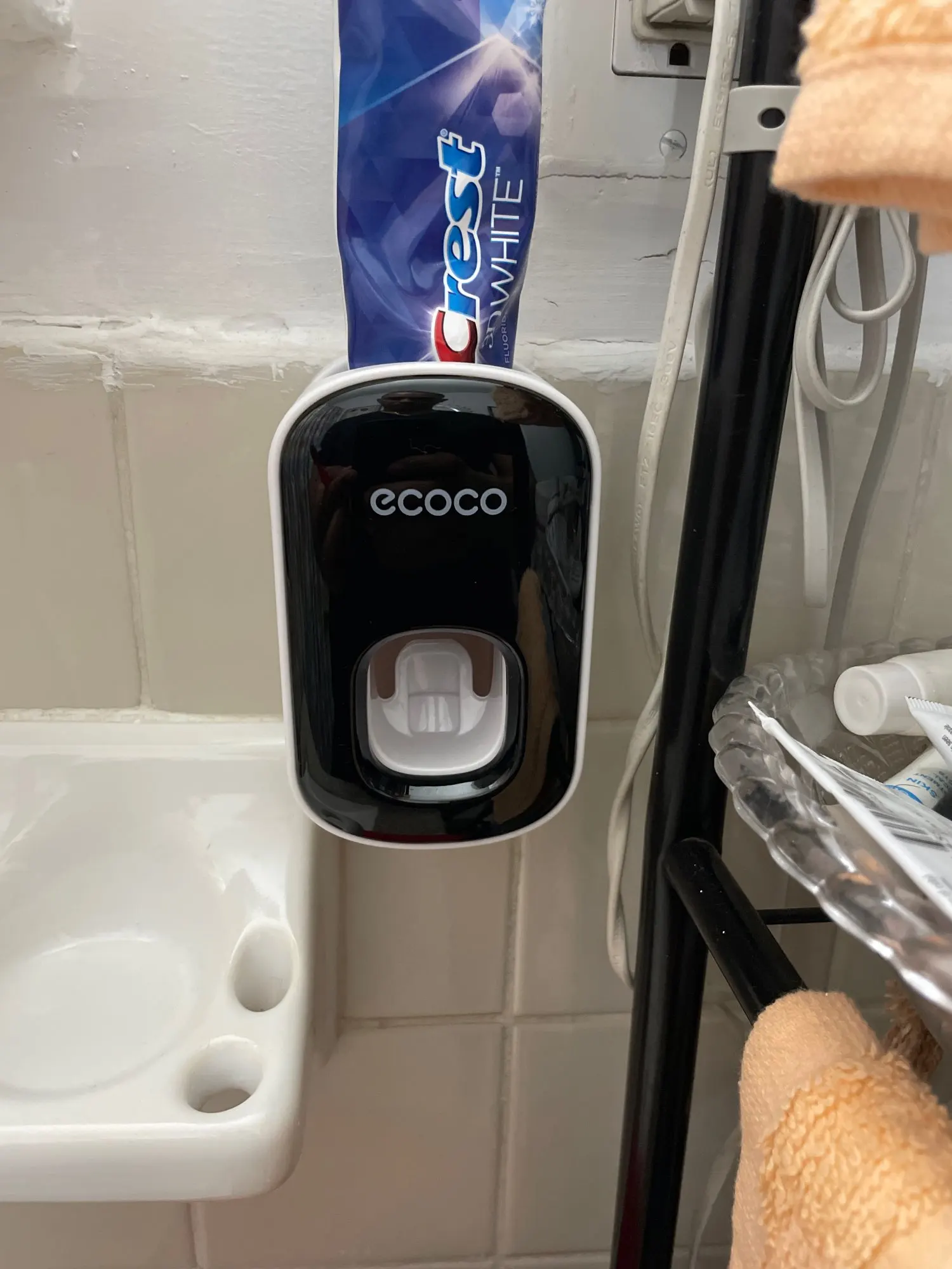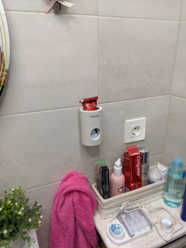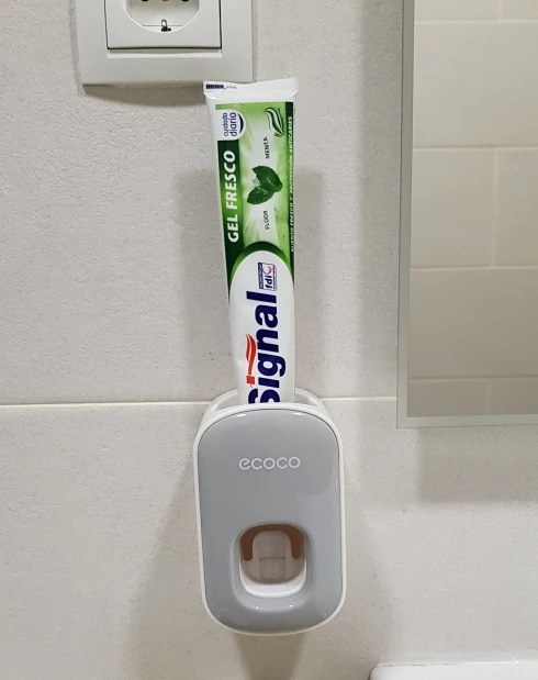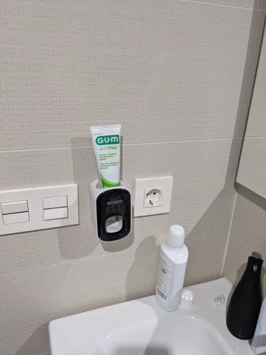 Super simple, super effective product. you stick the mount to the wall, put the device on the mount, then put your toothpaste tube in the device, and voila! dispenses a little more than a pea sized amount of toothpaste.