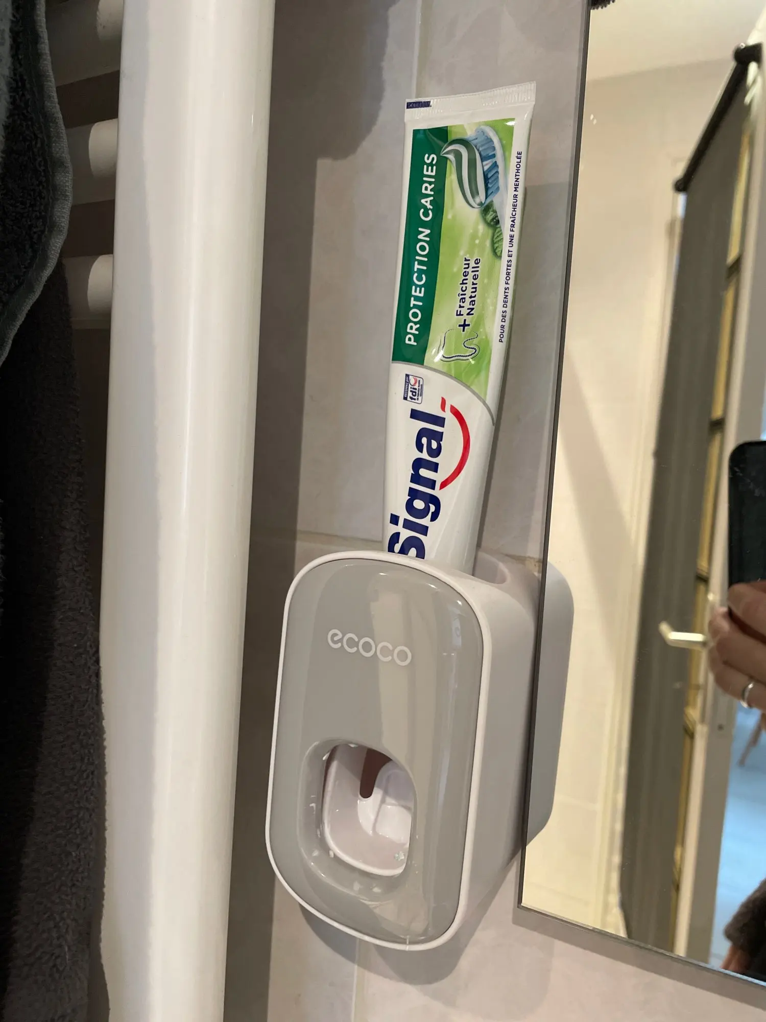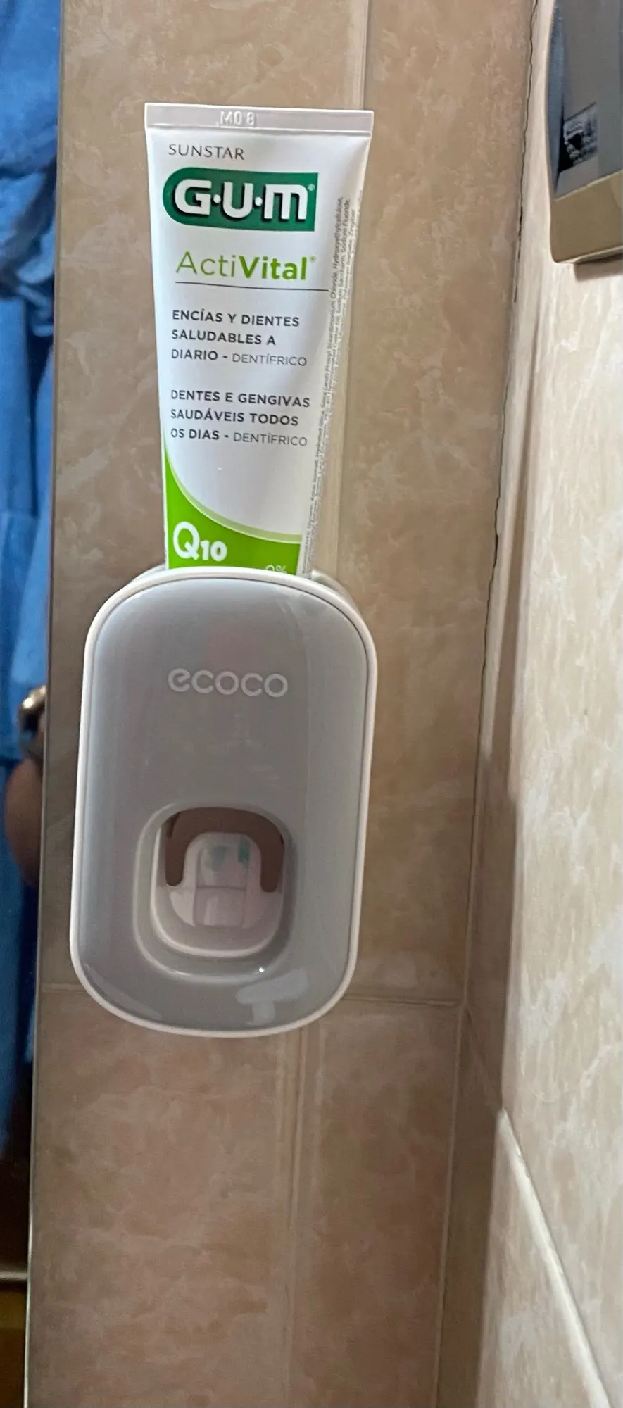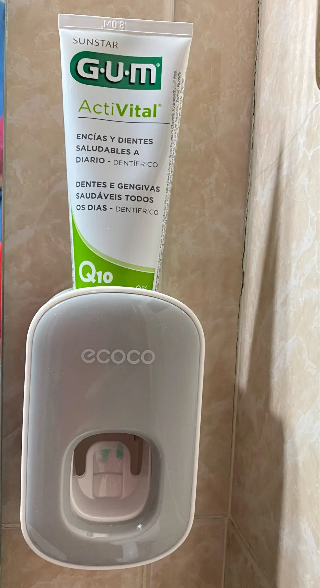 Super simple, super effective product. you stick the mount to the wall, put the device on the mount, then put your toothpaste tube in the device, and voila! dispenses a little more than a pea sized amount of toothpaste.
