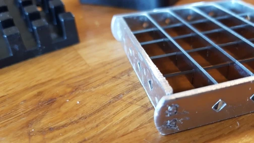 La finition du porte-lames est très brute (non poli et échardes) ce qui ne facilite pas son insertion dans le support et les lames font un arc léger. Néanmoins les lames sont très bien aiguisées.