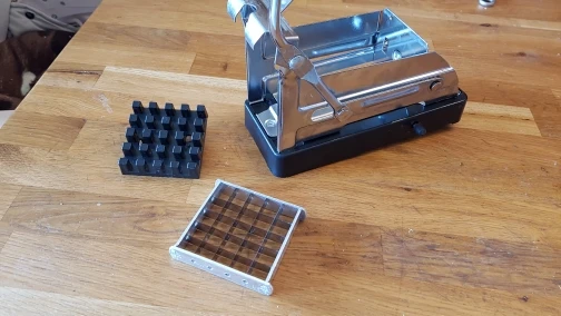 j'adore, j'ai réussi a couper toutes ces frites en 5 mins et avec une seule main, vue que j'ai mon bébé dans l'autre, la ventouse est adhere bien a la table et la decoupeuse est solide, je valide