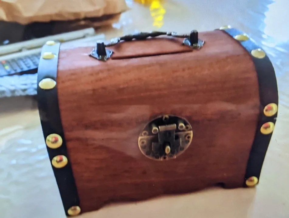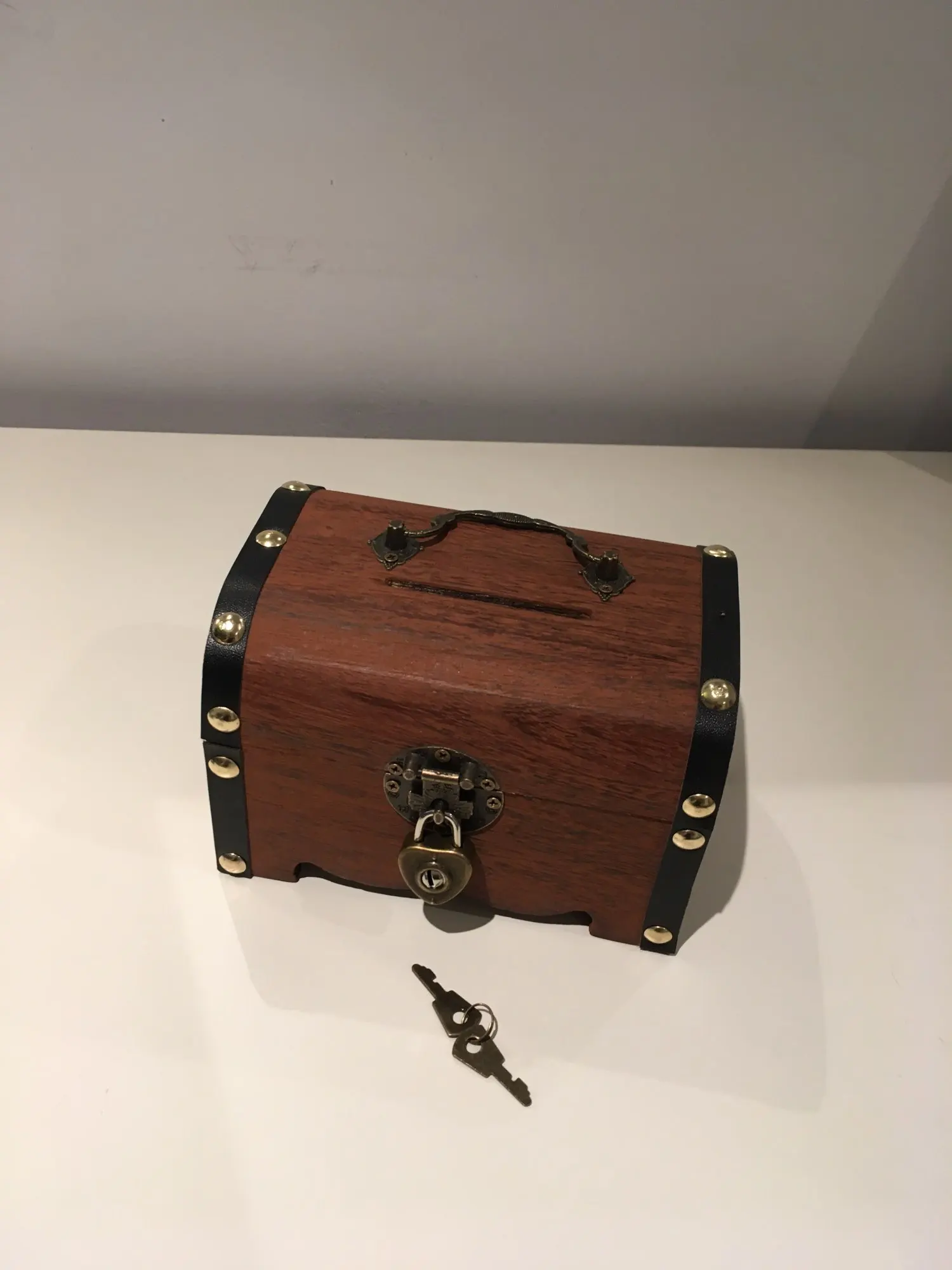 To jest archiwalne skarbonka skarbów. Wykonany z najwyższej jakości drewna i wykwintne wykonanie, ta skarbonka jest klasyczna i retro. Może to być skarbonka, a także delikatna ozdoba do domu, biura itp. konstrukcja zamka, bezpieczniejsza i wygodniejsza w użyciu. Ta skrzynia skarbów idealnie nadaje się na święto dziękczynienia, urodziny, wesela i prezenty na rocznicę. Funkcje