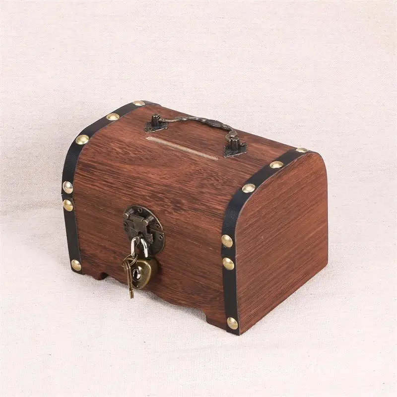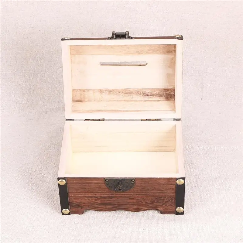 Archiwalne pudełko do przechowywania skarbów skarbonka Organizer skarbonka z zamkiem do domu Retro drewniane pudełko na monety skrzynia skarbów prezenty