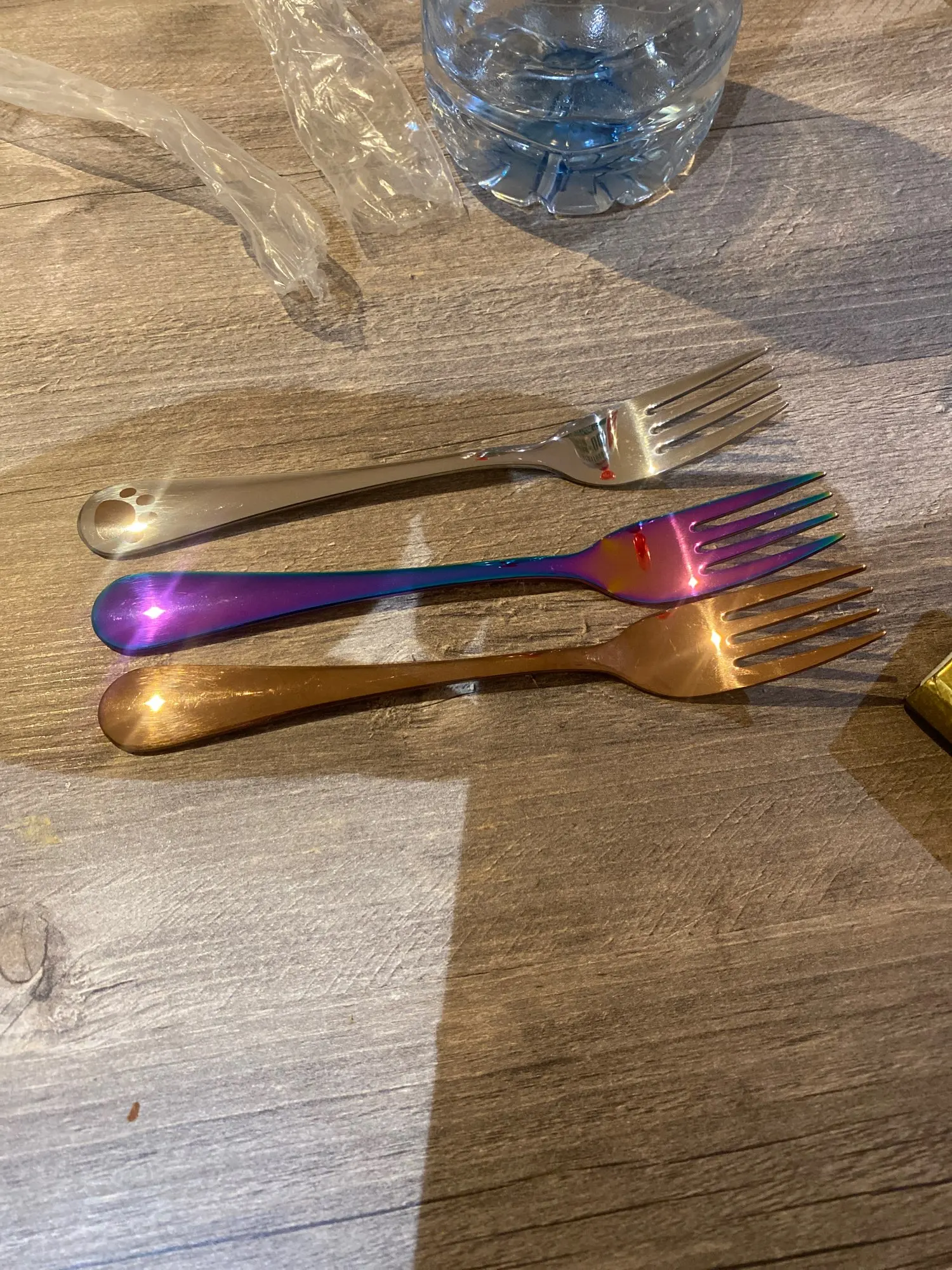 1Pc dzieci widelec Food Grade widelce ze stali nierdzewnej złoto na sałatkę owocową mały okrągły uchwyt naczynia stołowe przydat
