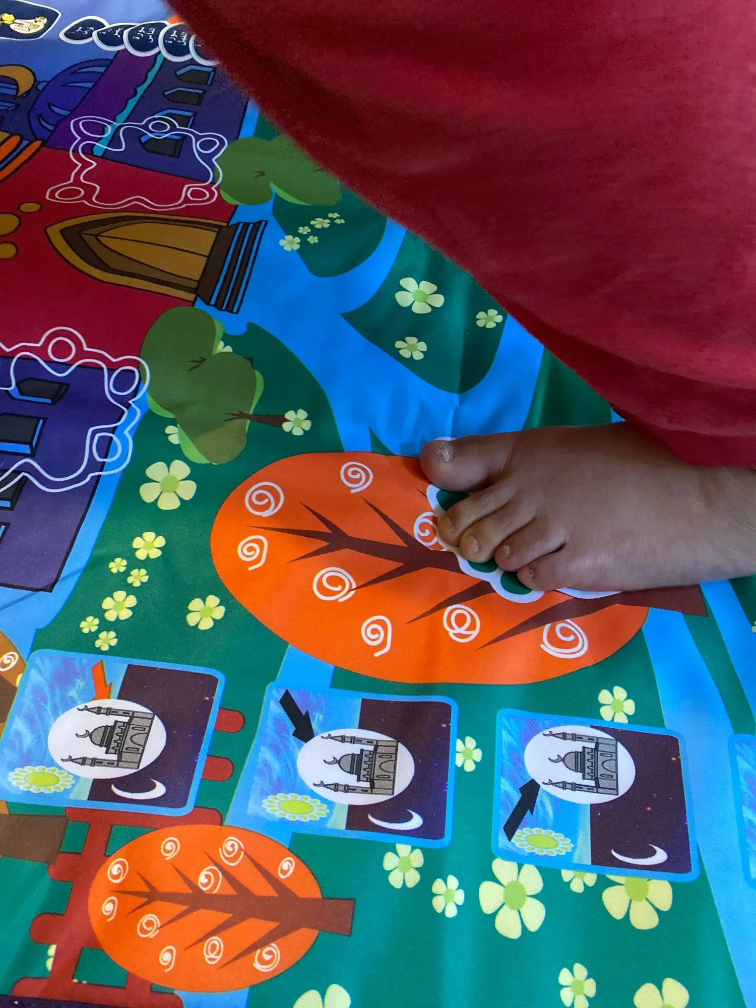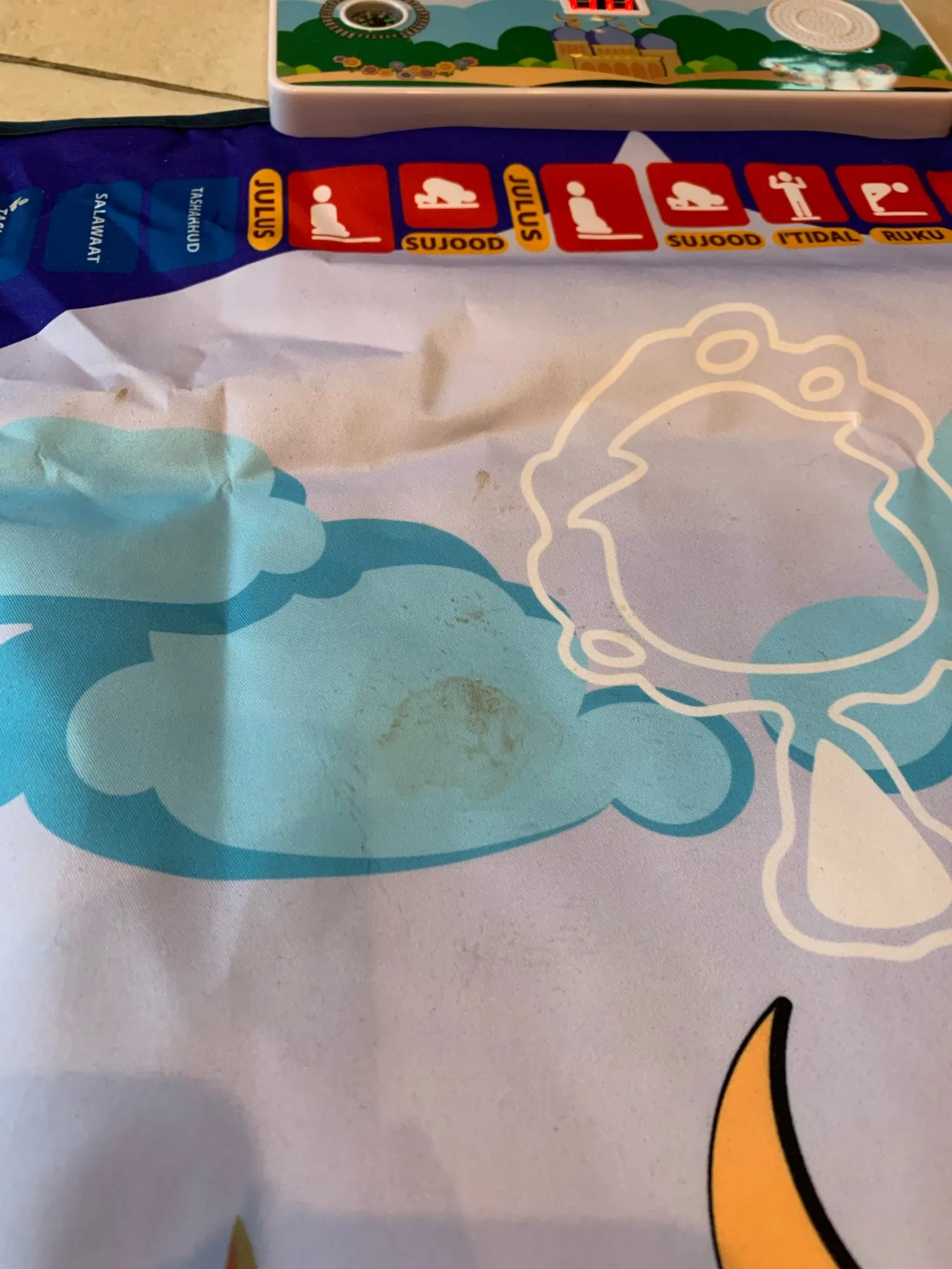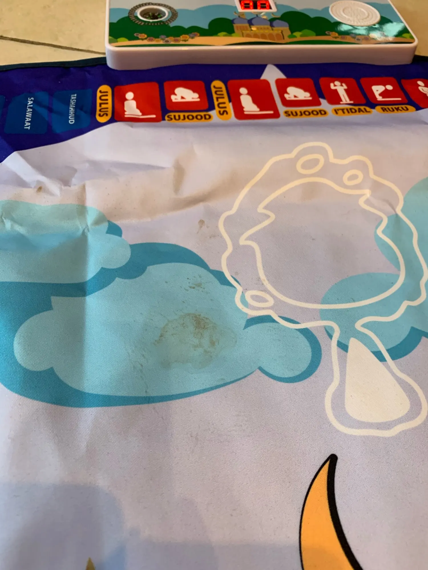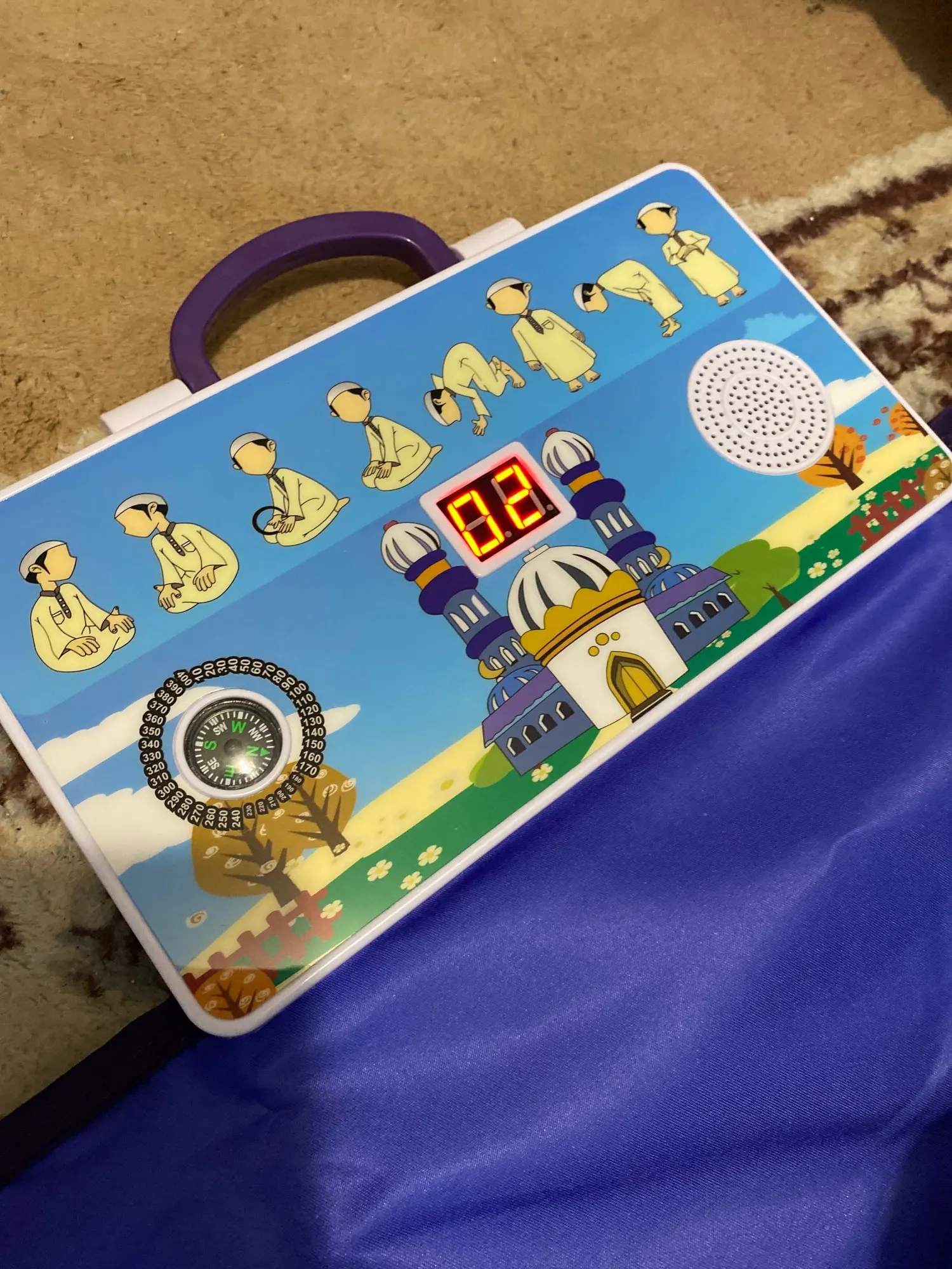 -Jest to dywanik modlitewny zaprojektowany, aby edukować dzieci, jak wykonywać muzułmańską modlitwę w zabawny i przyjemny sposób.