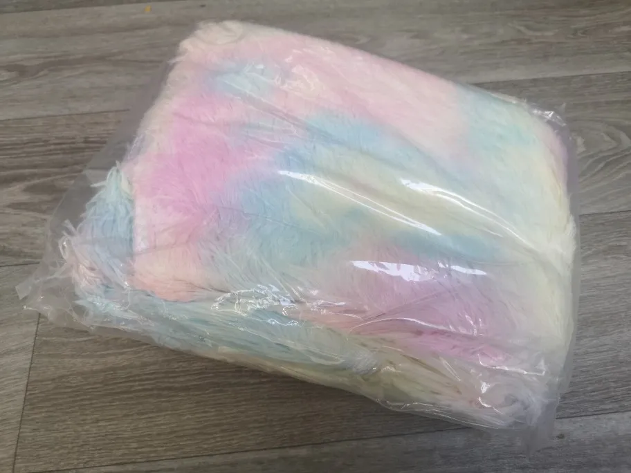 выбирала быструю доставку,чуть больше двух недель.очеень клёвый,пушистый,быстро расправился, в подарок сердечко,приятно.брала 140×140