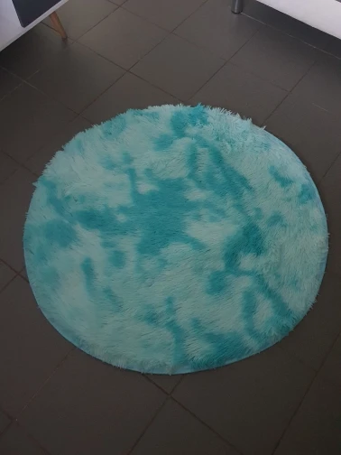 Le tapis est comme sûr la description un beau bleu ciel avec un mélange de blanc , mis dans mon salon j'ai pris 1m sûr 1m et c'est nickel éyant un petit salon c'est parfait . Foncez n'hésitez surtout pas .