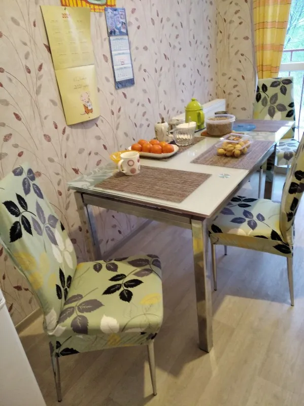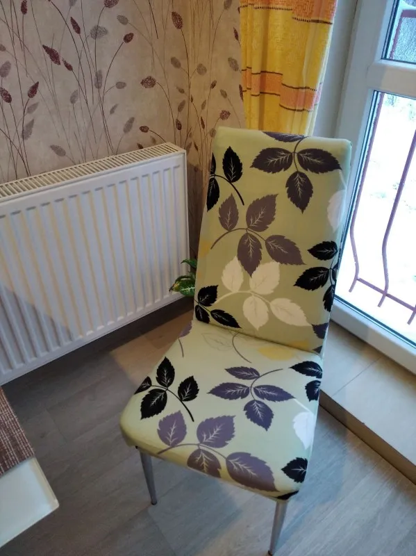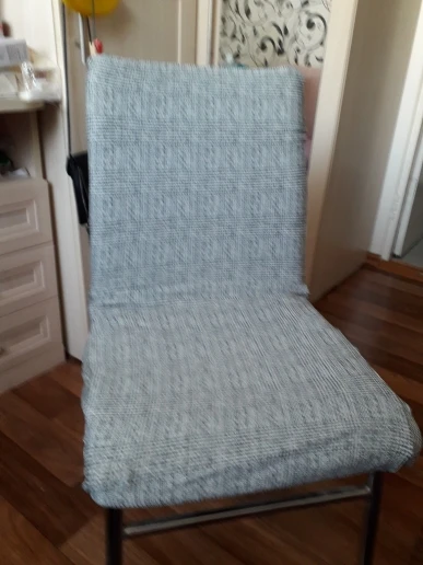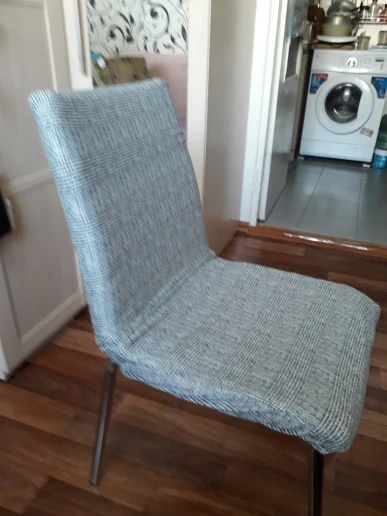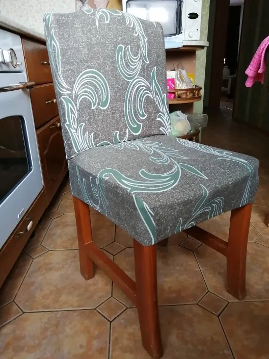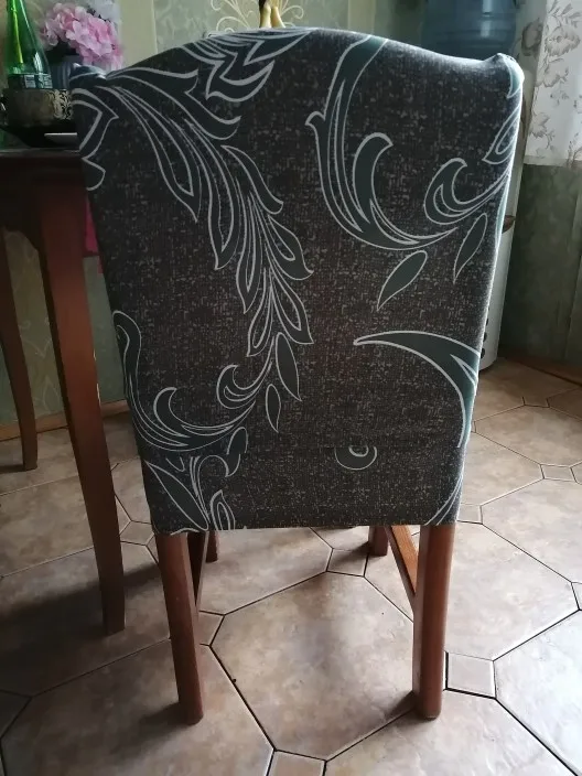Чехлы мягкие, приятные. Стулья кухонные со спинкой, небольшие. Чехол на большие стулья и кресла, поэтому на сгибе подогнула. Так как чехлы очень эластичные, подгибы по центру не заметны. Очень довольна. Коту не понравились, не цепляются коготки. Супер. Шли до Челябинска около трёх недель. Быстро, обычно дольше.