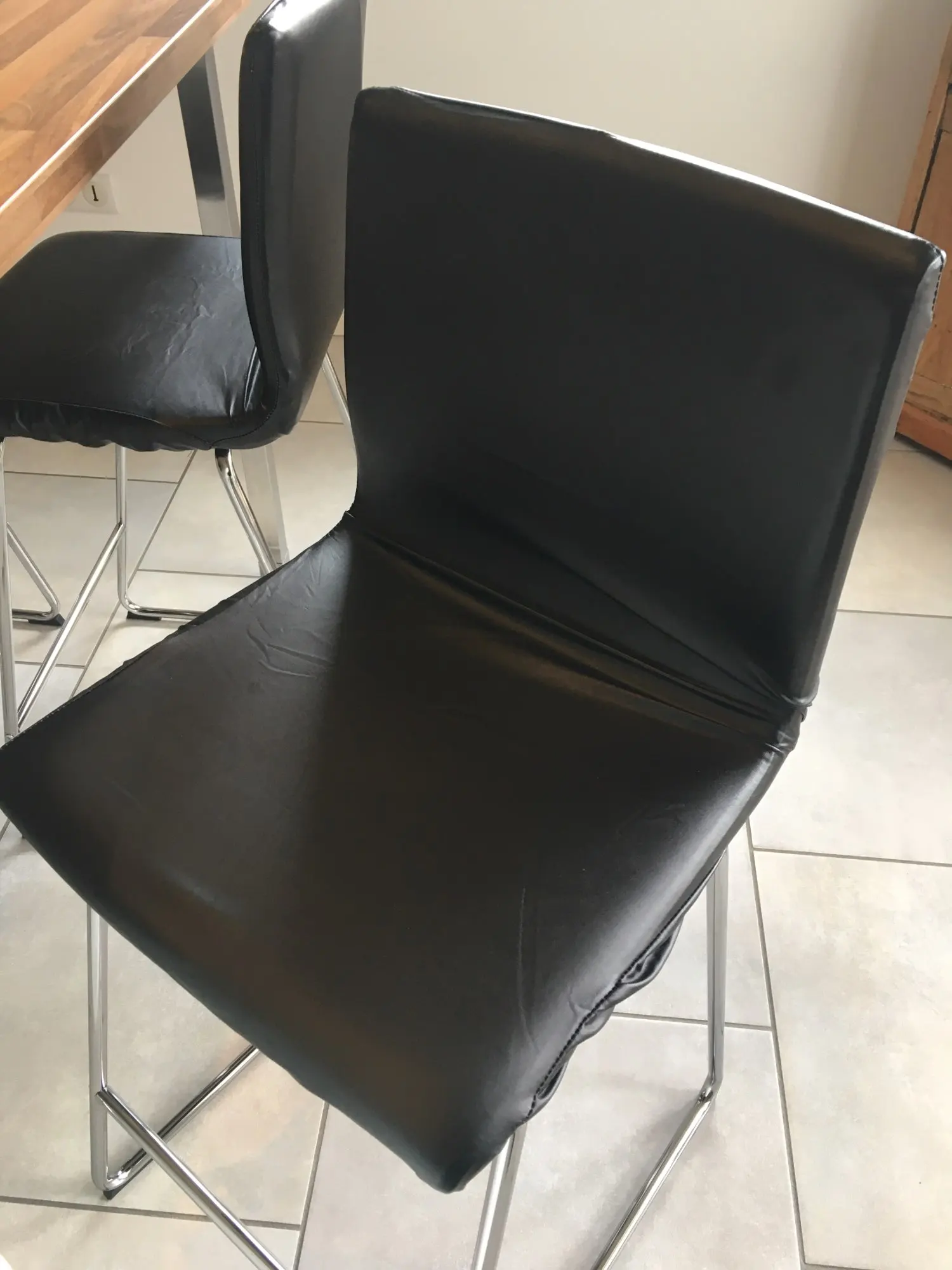 un peu plus grand sur mes chaises au niveau du dossier pour des chaises ikea ca fait desbplis dans l'angle mais ca va , pas si epais que ça mais vraiment très blanc. devait arriver plutôt que prévu
