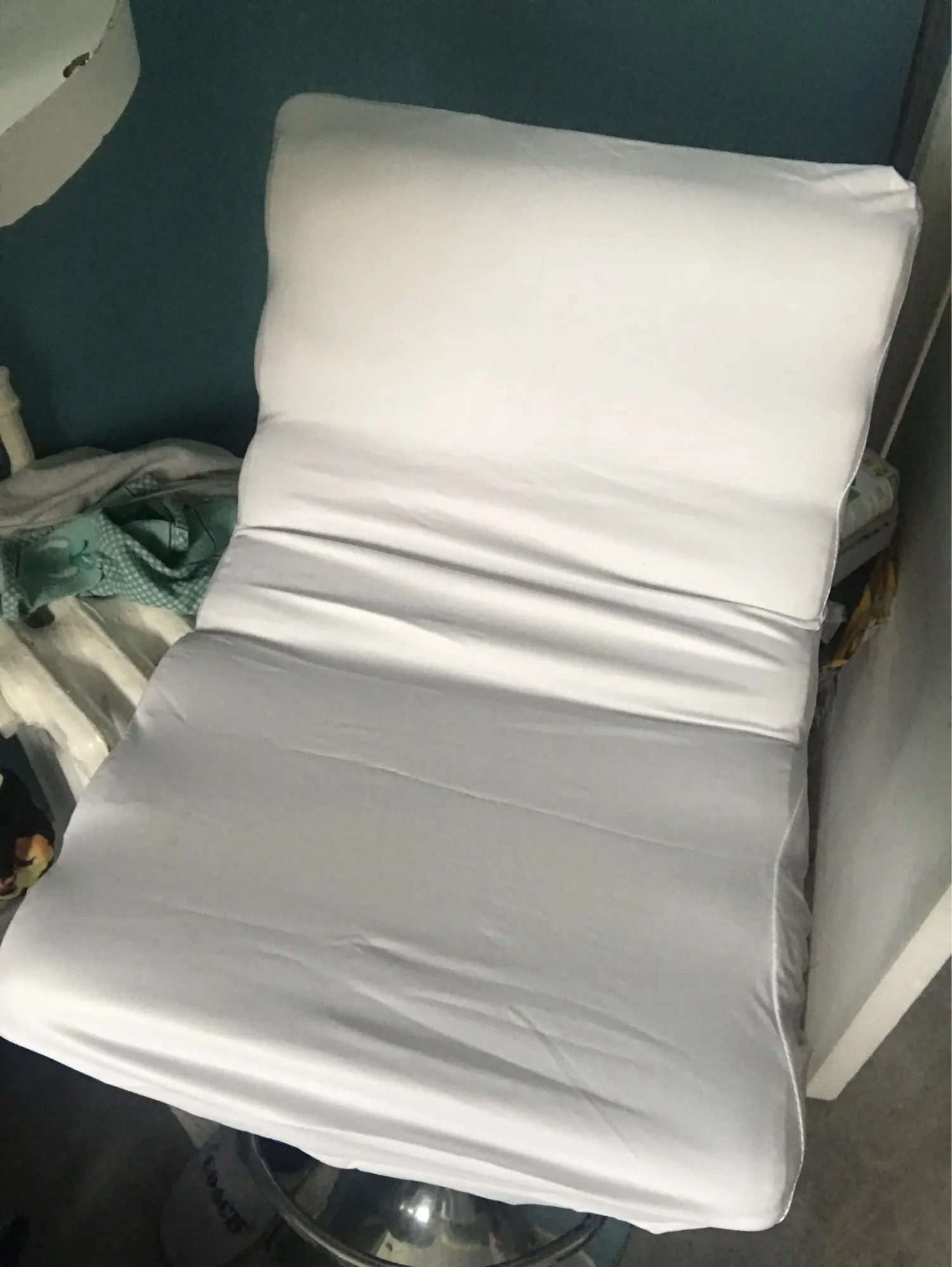 Très bien. Je pensais que c'était un peu argenté ou irisé. Le tissu est blanc mais c'est bien aussi. Je recommande pour le prix.( lot de deux housses)
