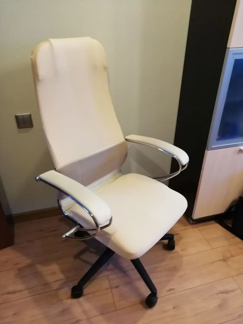 Нормально. Приехал товар ОЧЕНЬ быстро, за это спасибо! Но сам чехол на много меньше, чем на видео. Моё кресло даже меньше чем на демо видео, однако на спинку Часть натянули с огромным трудом. Цвет очень приятный. Такой же как на фото.