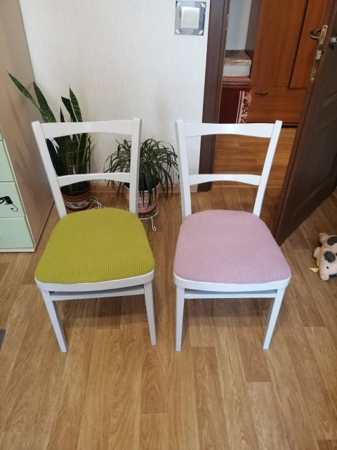 Посылка дошла быстро, до Москвы две недели, продавец отправил сразу же. Чехлы хорошие, тянутся хорошо, на мои стулья даже великоваты, но я натянула их без складок. Старые советские стулья преобразились - краска плюс новые чехлы. Всем рекомендую и товар, и продавца.