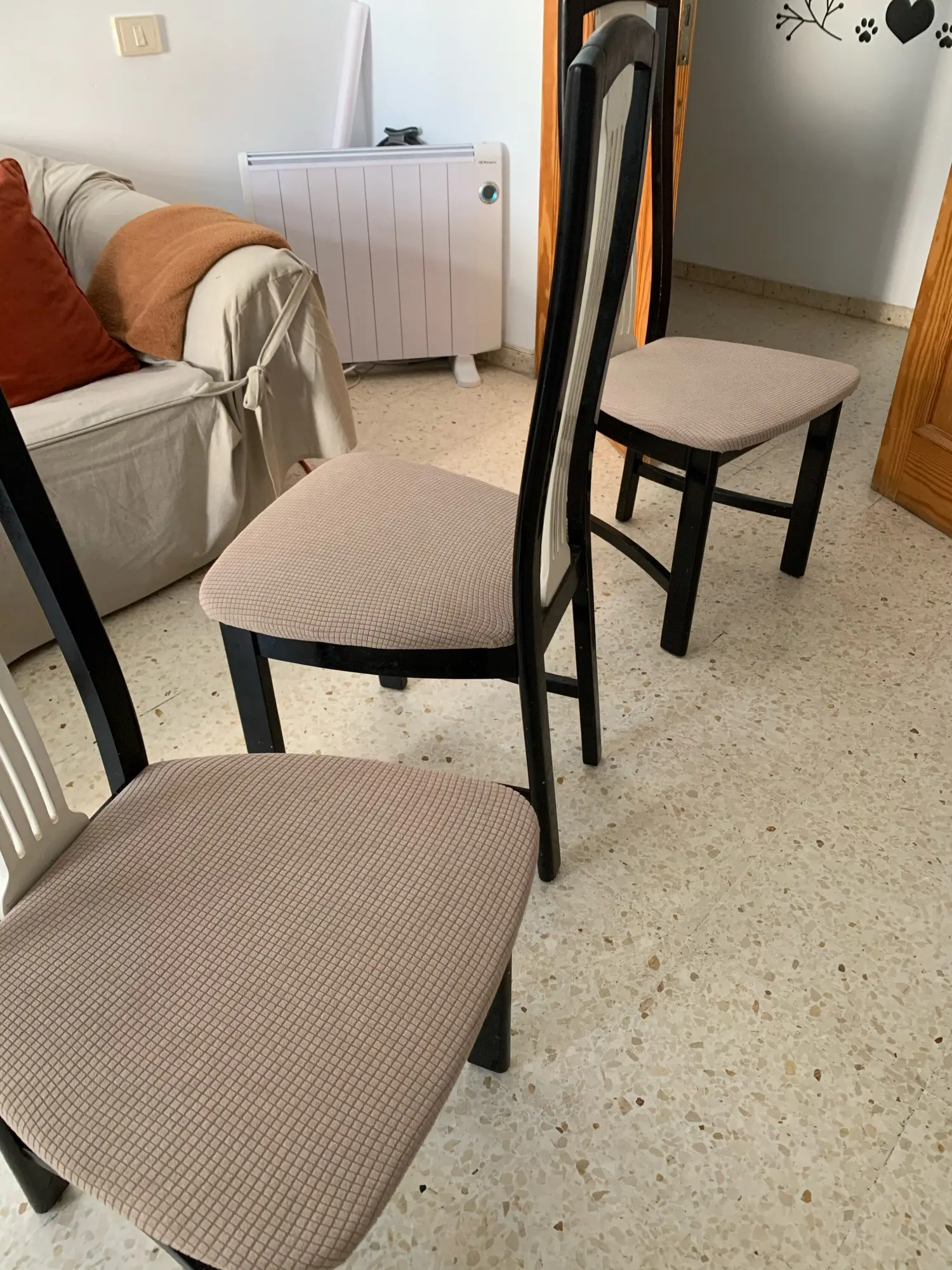 Super! Fast delivery, correct size, velvety material, they adapted perfectly to our chairs. Absolutely recommended it gives a second life to the chair.
