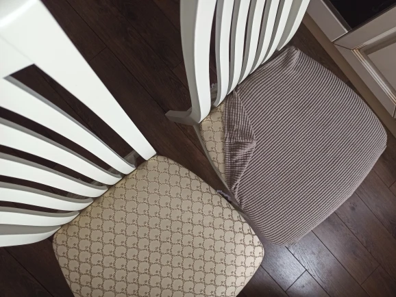 прикольные чехлы! переживала что не налезут на большие стулья, однако они очень хорошо тянутся! чтобы сели как родные хочу открутить силушку, надеть чехлы и обратно прикрутить :)
