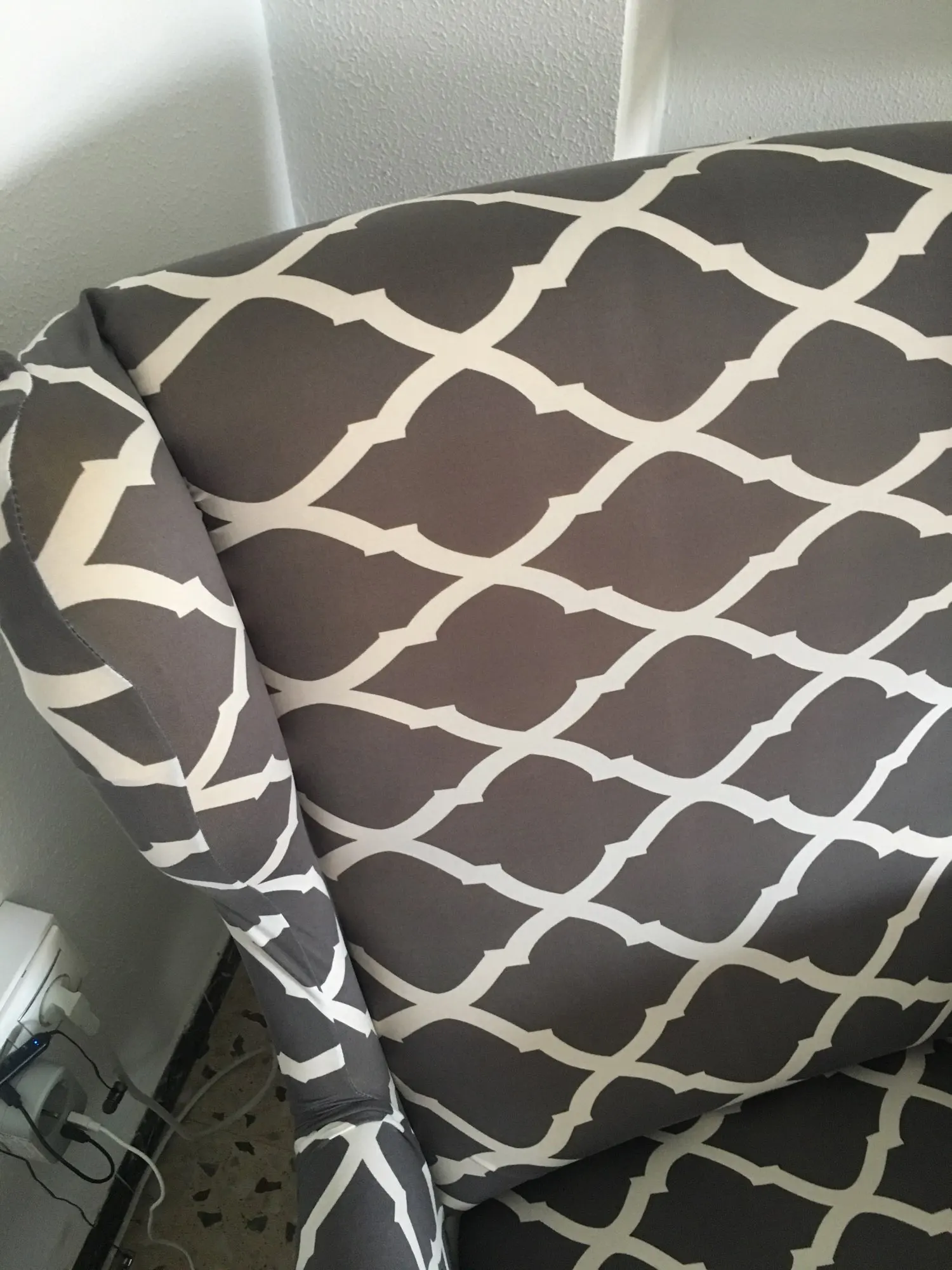 materiał grubszy elastyczny dobrze pasuje na fotel z "bodzia" polecam po założeniu fotel wygląda na nowy ;)