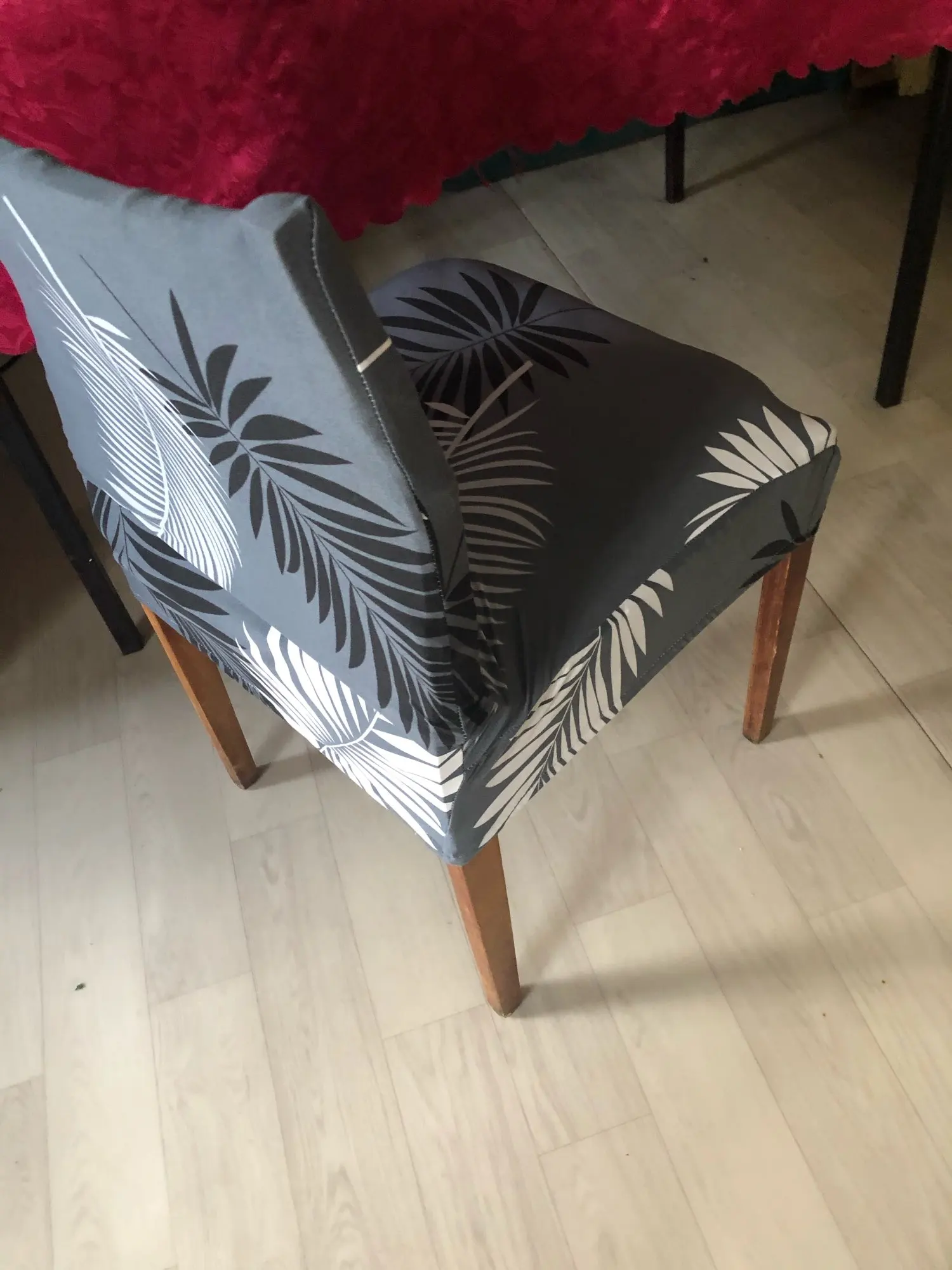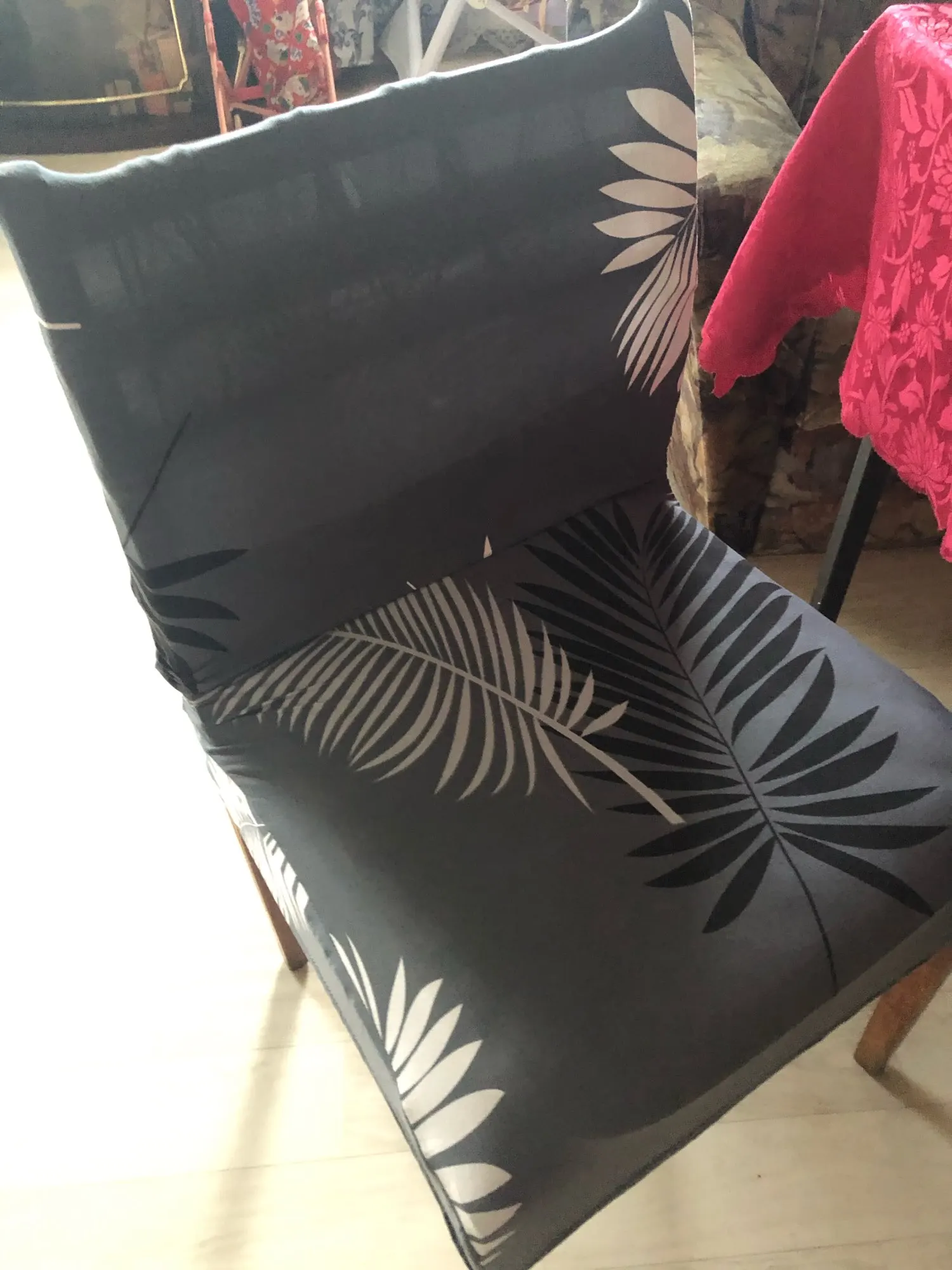 Старый дряхлый стул превращается в не совсем дряхлый... Рекомендую! Хороший продавец и товар. Тянется замечательно, ткань приятная. Шмоток из такого материала в нашем городе не найдёшь, а вот чехол на стул пожалуйста) Берите не пожалеете. Продавец часто даёт купончики, за что отдельное спасибо. Доставка не долгая.