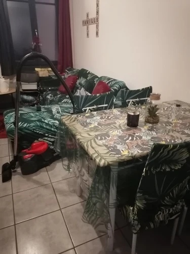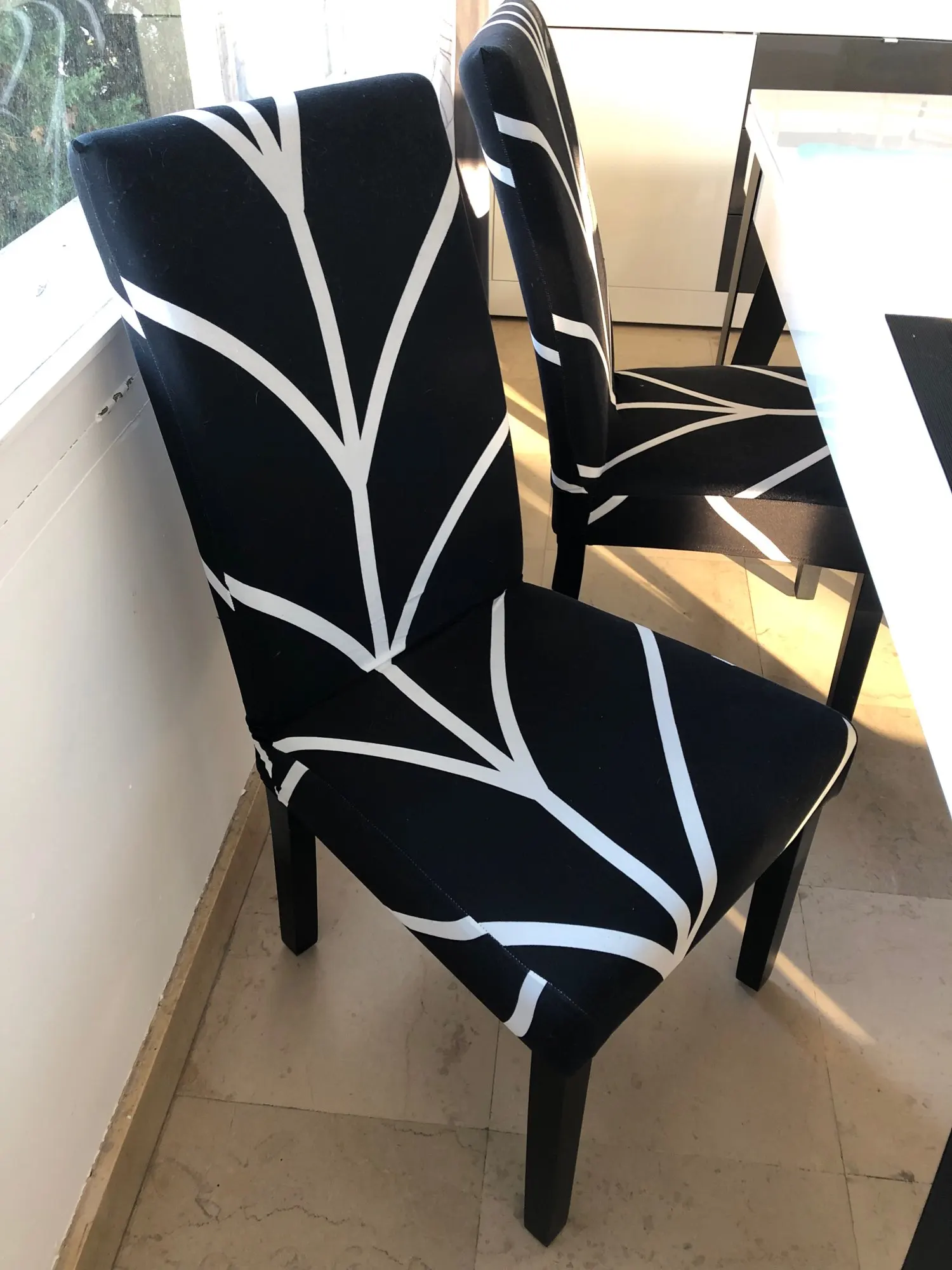 la tela es muy finita. en nuestro caso no ajusta bien con las sillas y además una de ellas venia con una zona descosida. eso si, llegó muy rápido.