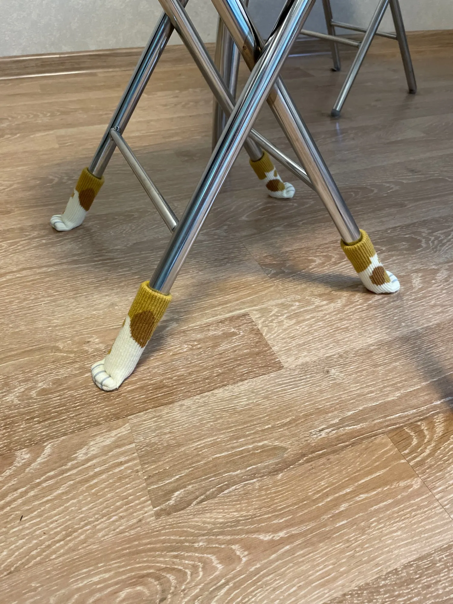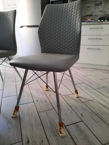 Обожаю эти чехлы! Очень милые, плотные. Но это не панацея, советую под них на ножки (особенно, которые крепятся к стулу не под прямым углом, а под наклоном) одевать накладки (например, силиконовые, можно заказать здесь же).