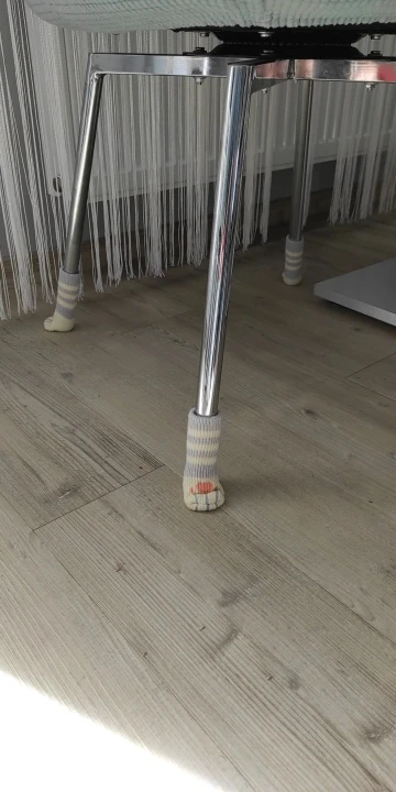 Прикольные носочки, быстрая доставка. Носки достаточно плотные, хорошо сидят на стульях. Заказала пока на два стула, но теперь закажу и на остальные. Я осталась довольна покупкой.