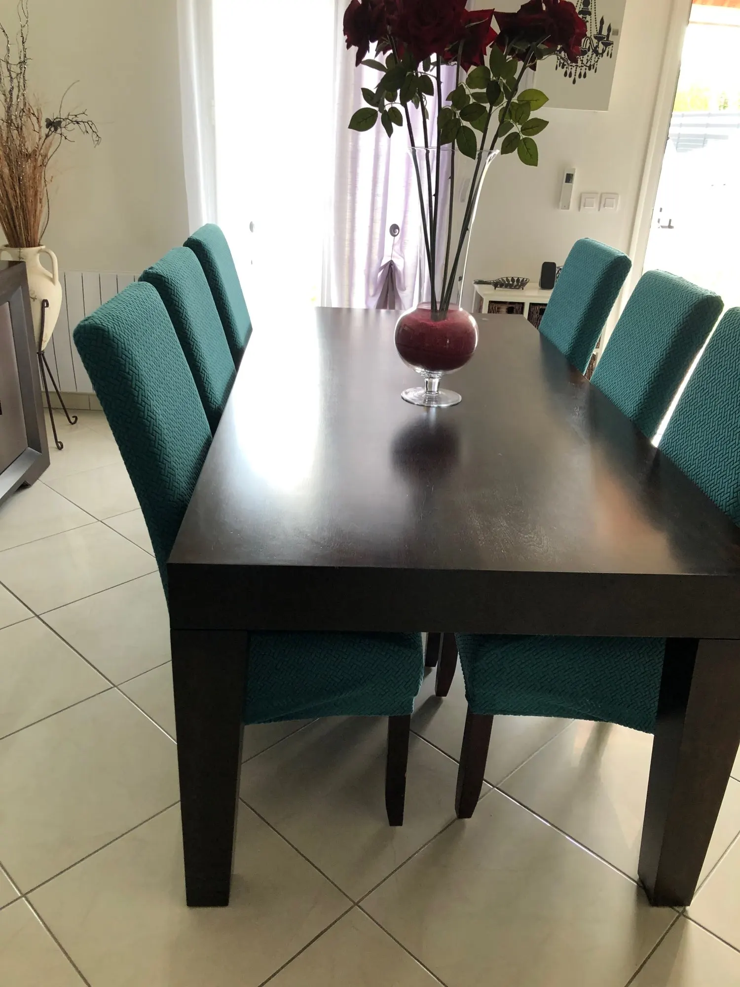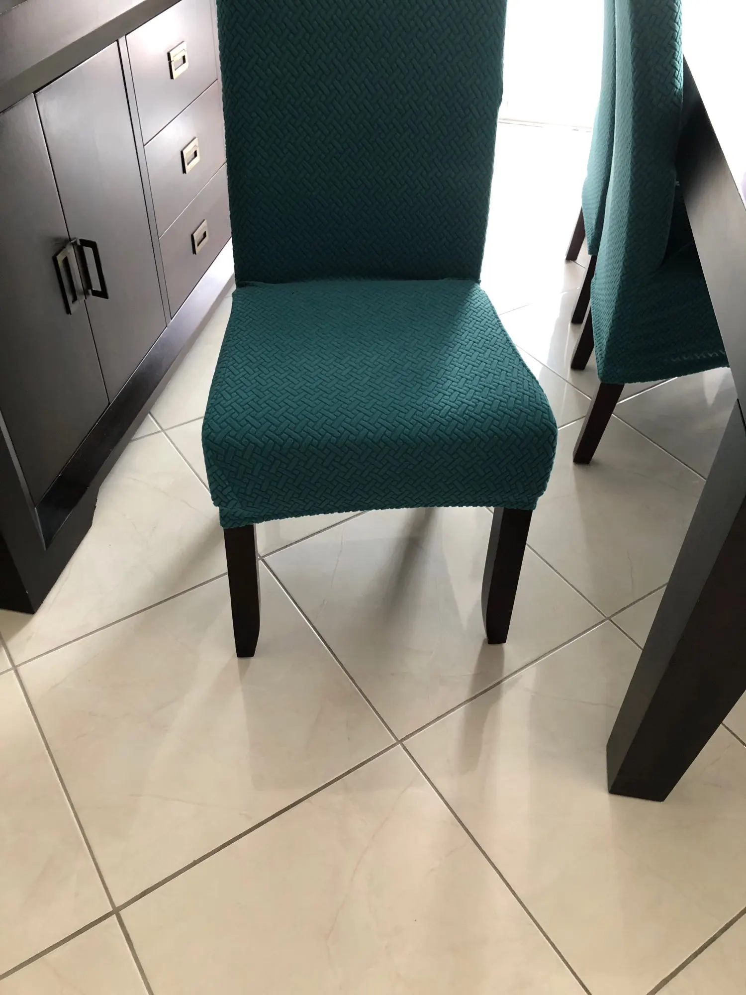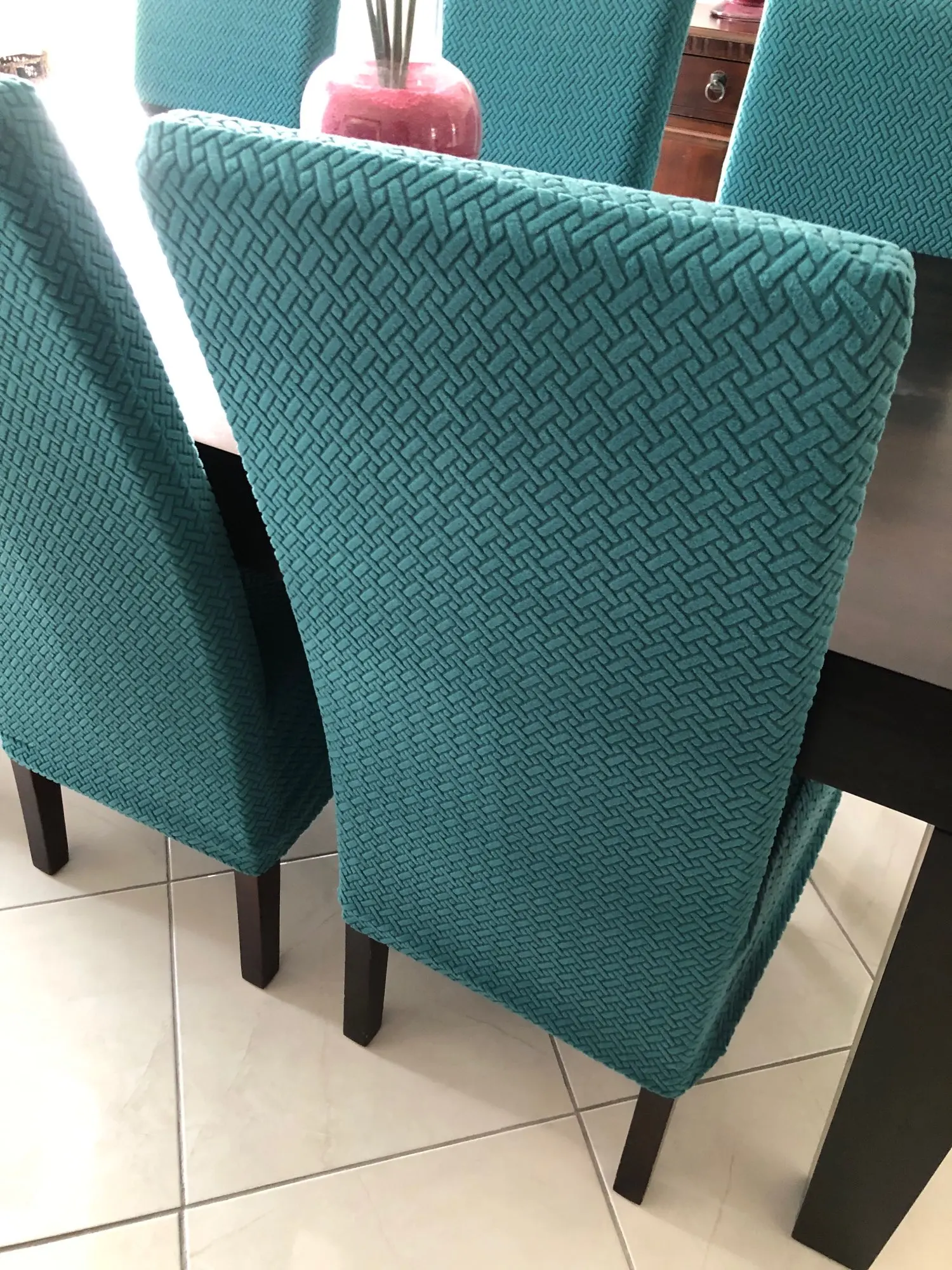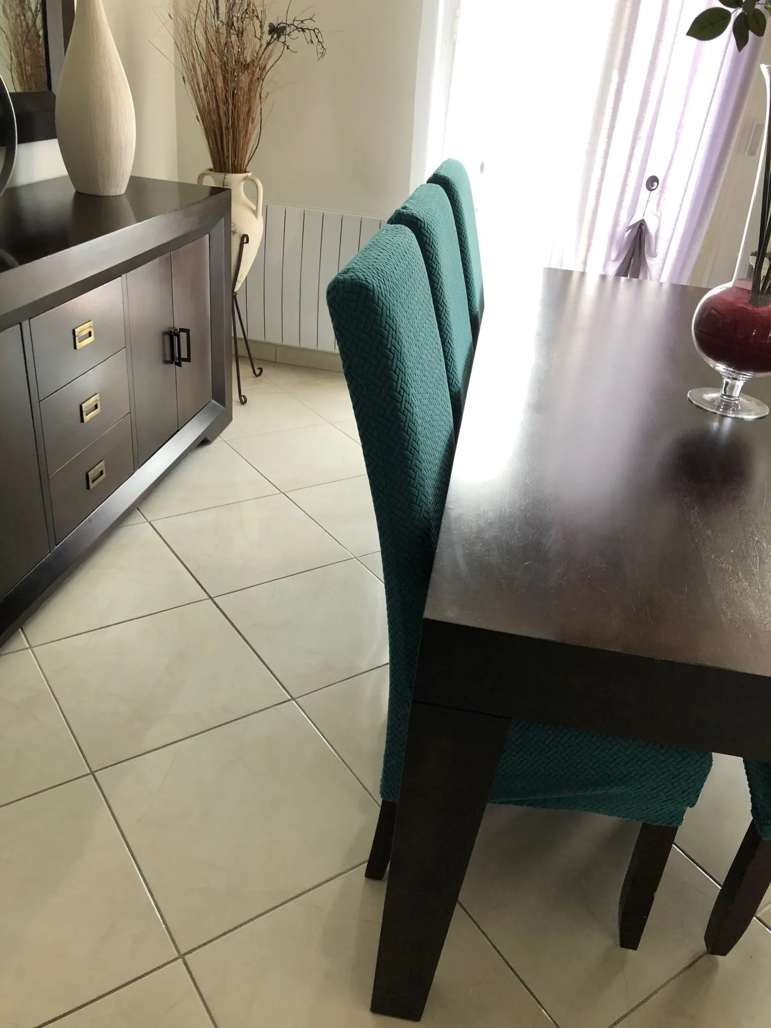 Très très très très très très très jolie housse de chaise impeccable parfait la mise en place rapide la livraison rapide comme prévu je recommande ce vendeur vous pouvez commander sans problème et à prendre les mesures des chaises merci Ali express
