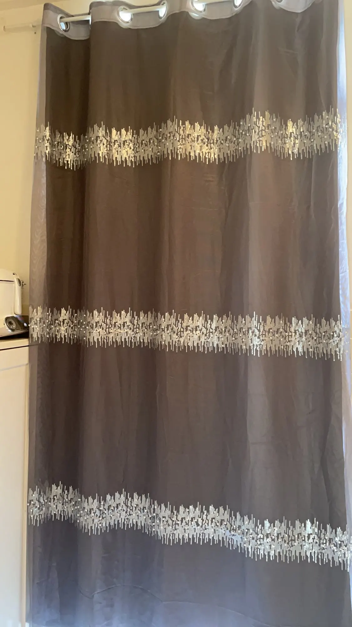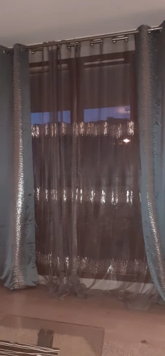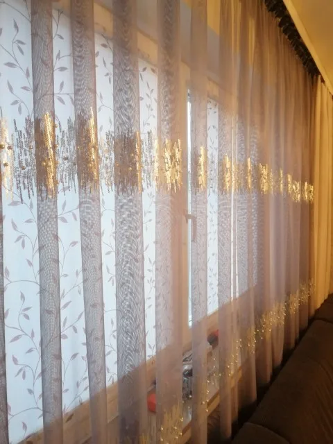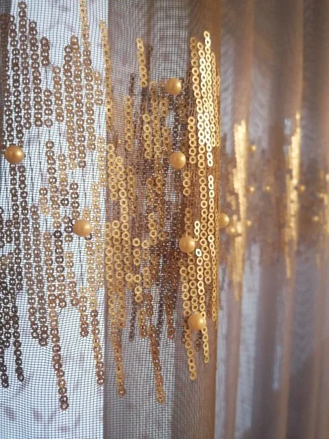 Na przykład: jeśli potrzebujesz zasłony z szerokość o długości 4 metrów w sumie, możesz zamówić 2 sztuk z 1.5m szary zasłona plus 2 sztuk z 50 cm cekiny tkaniny; szyjemy cekinową tkaninę i szarą tkaninę razem, innymi słowy, łącząc je w 2 kawałki o szerokości 2 metrów zasłona.