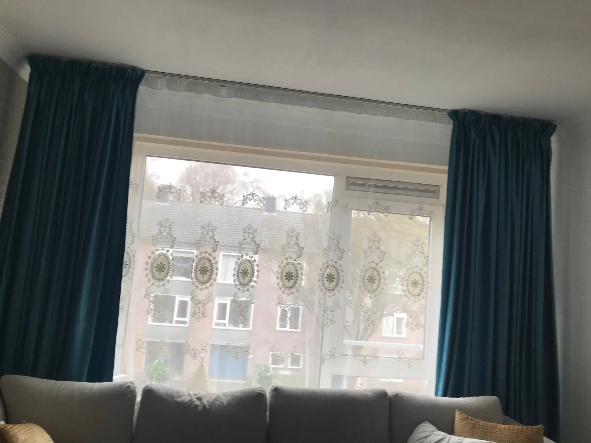 Thanks to seller because we asked about fit lenght (few centimeters shorter) and it's done. Colour is from blue to green it's depend of light and angle. Very well packed and fold. Ordered 9.4. and came 20.4. Happy to recomend this seller. Really happy about this order