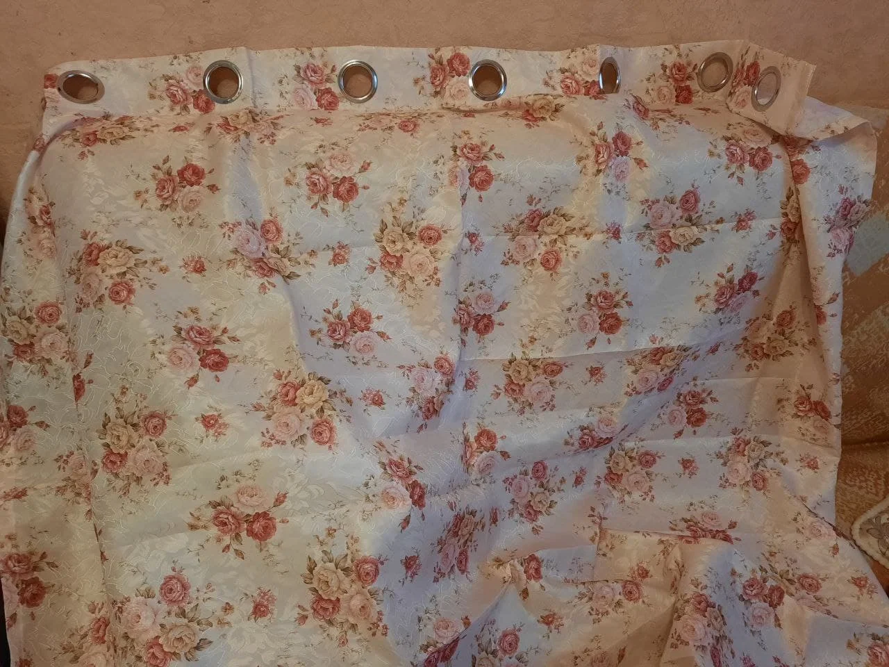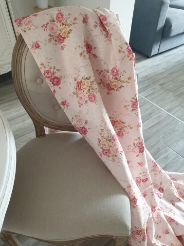 доставка до казани 48дней, трек не отслеживался, уже отчаялась, но звонок из транпортн.компании и доставка до квартиры. ткань тонкая, цвет между розовым и бежевым (зависит от освещения и интерьера). пошито в общем хорошо, но местами волнами. брала 4занавески для дачи в "деревенском" стиле, поэтому все норм