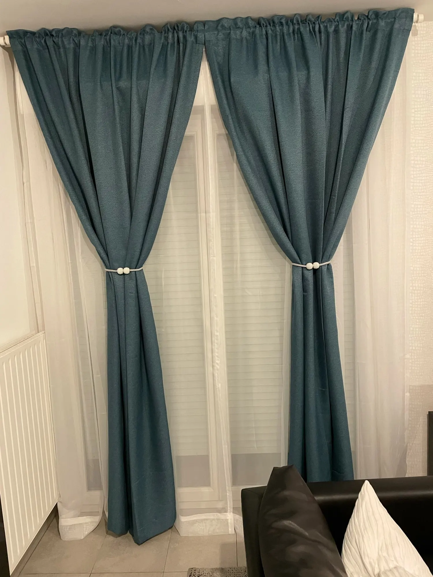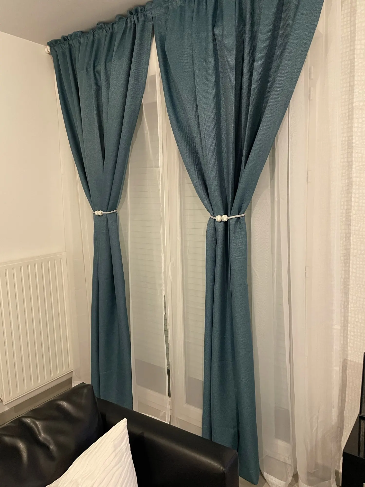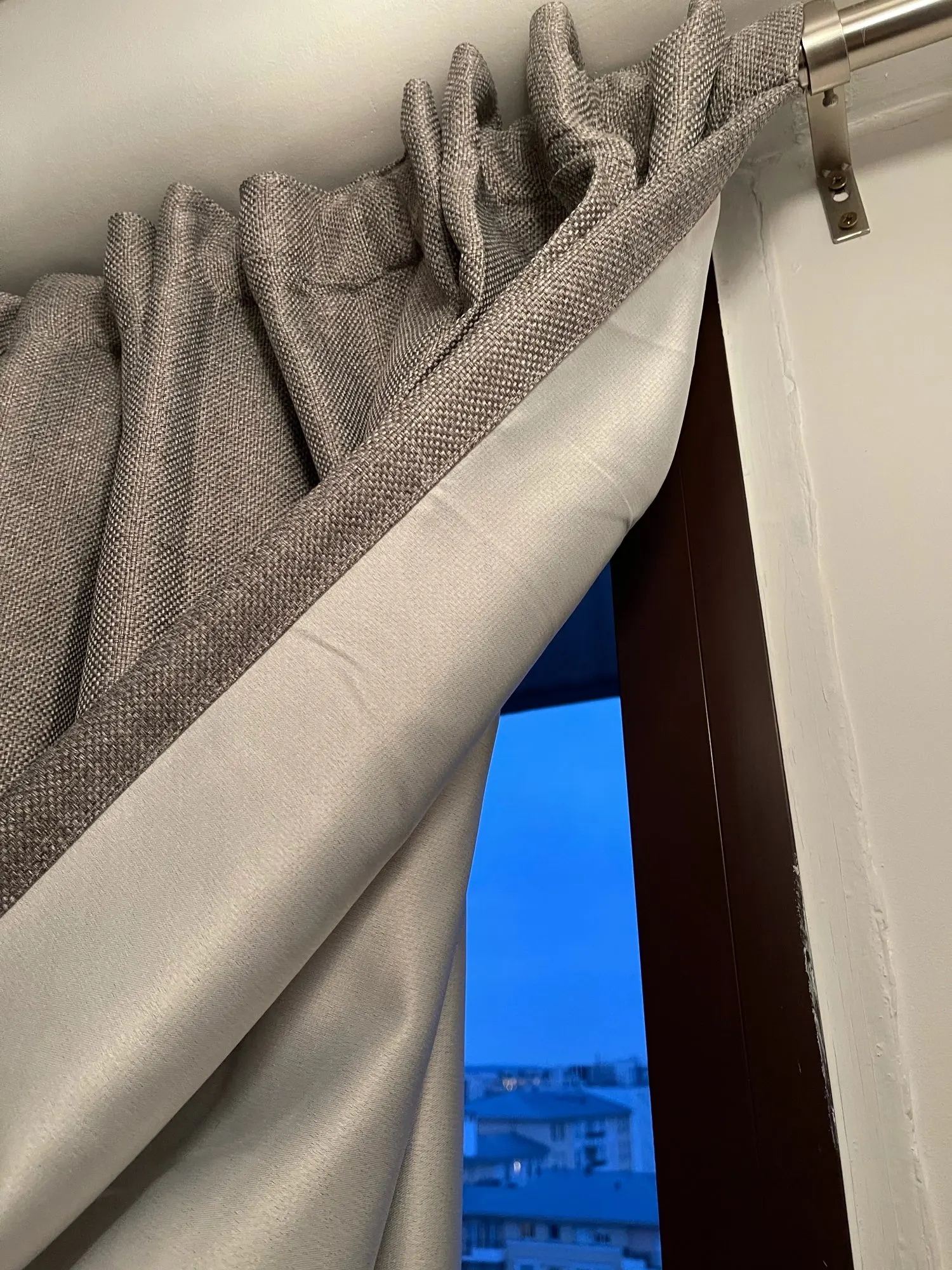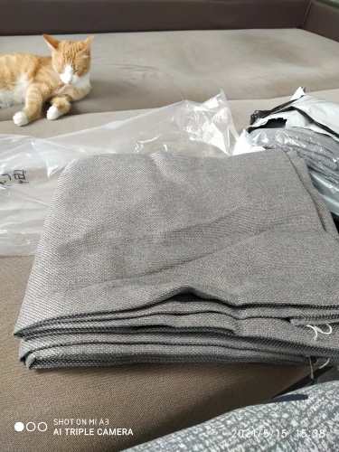 В целом, довольна шторами. Выглядят очень качественно. Продавец подогнал под нужный размер 200х200 и прислал остатки ткани после обрезки, за что отдельное спасибо. Но данные шторы не являются полным блэкаутом. Первое фото сделано при дневном освещении, второе - с комнатным светом. На мой взгляд, они затемняют на 80%.