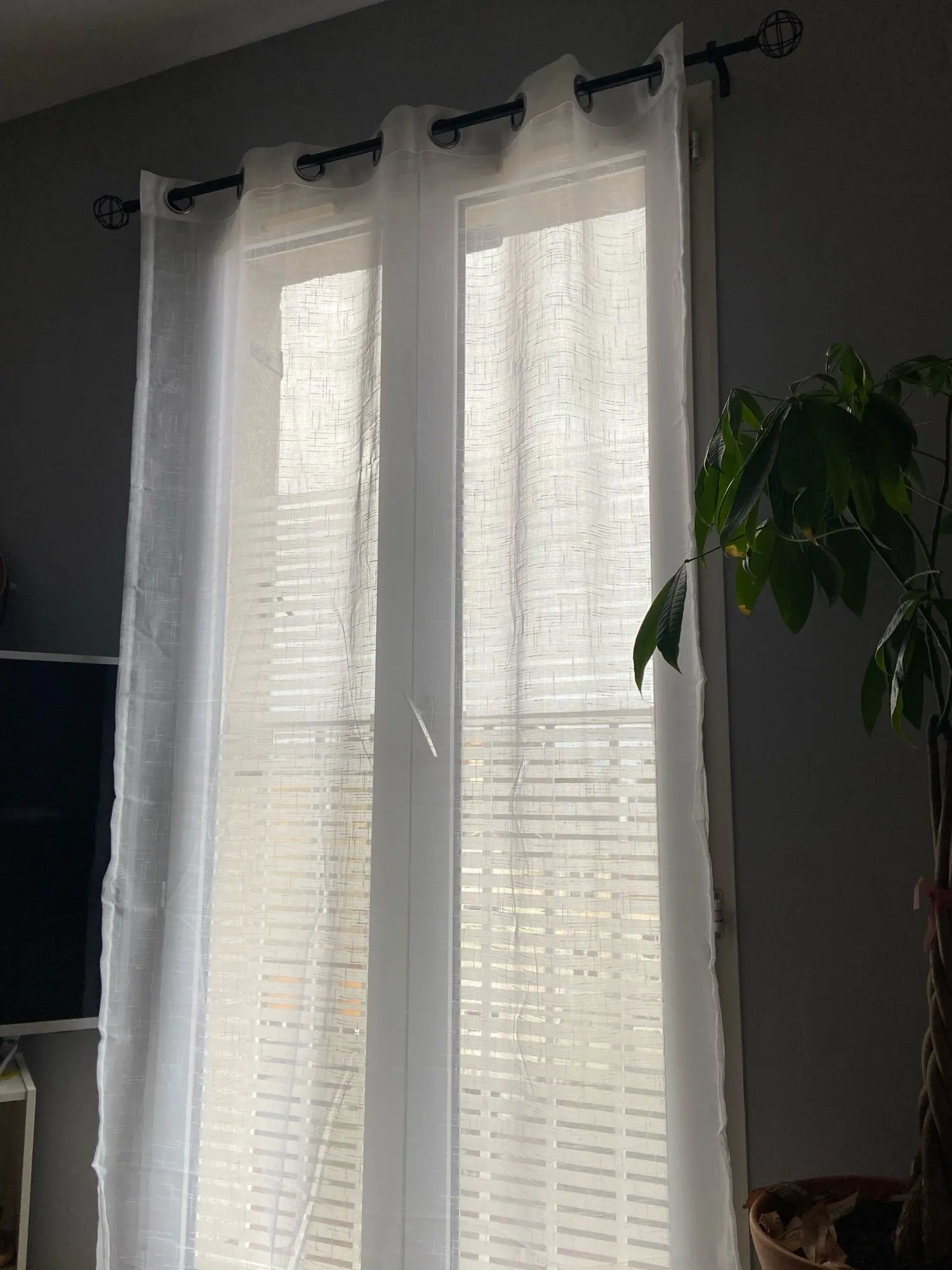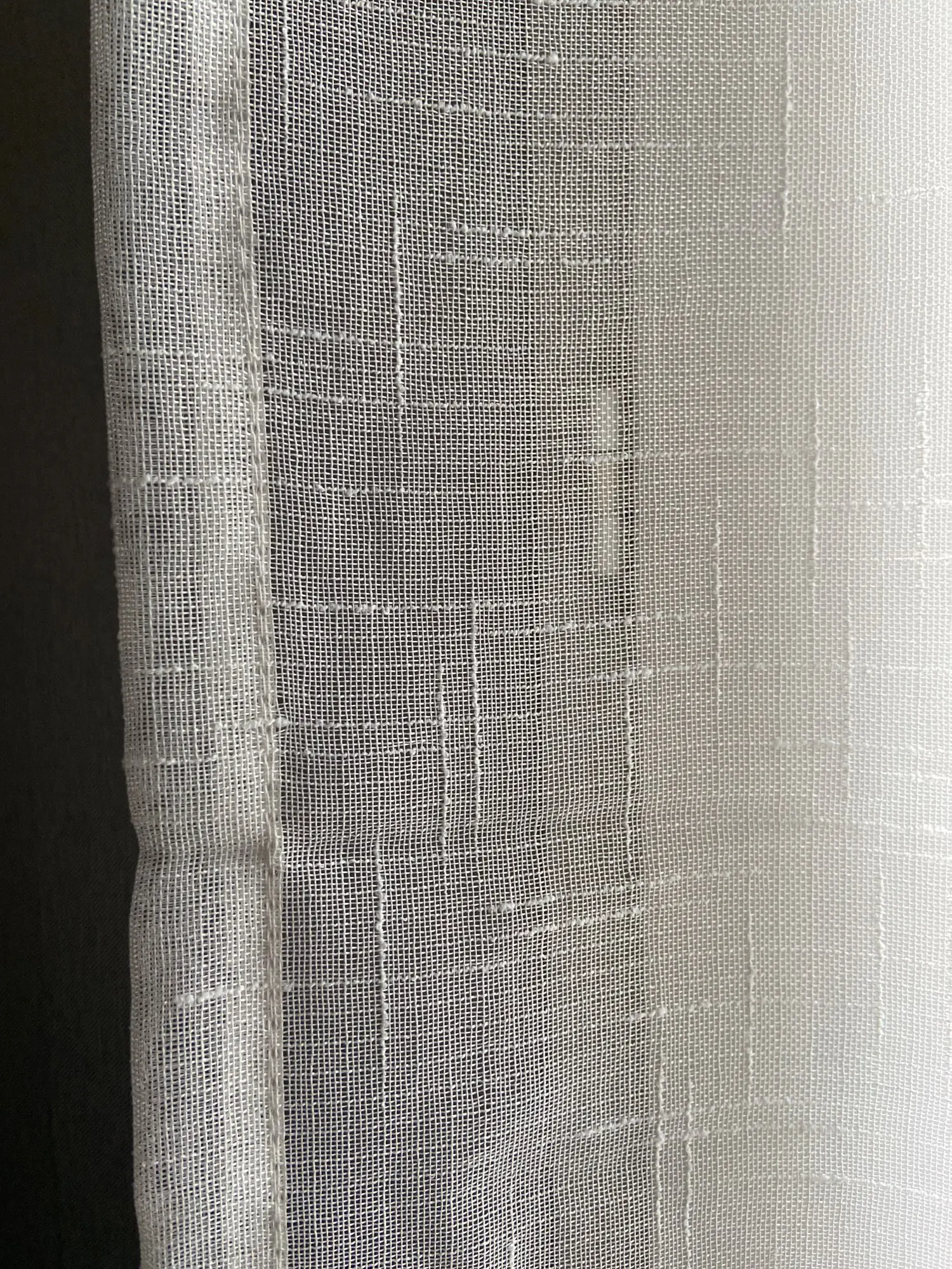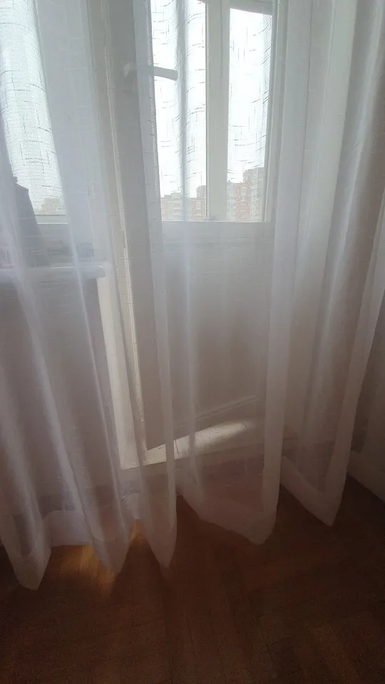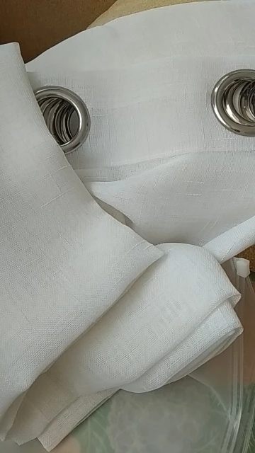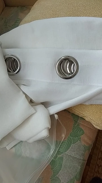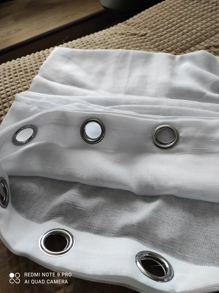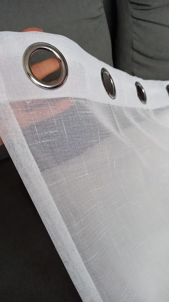 Tutto come descritto, tenda molto bella, elegante. Fa passare la luce, tessuto morbido. Ne ho prese due, una è perfetta, l'altra ha dei difetti dove hanno creato gli occhielli, ma sono riuscita a cucirli. Comunque, consigliatissima.