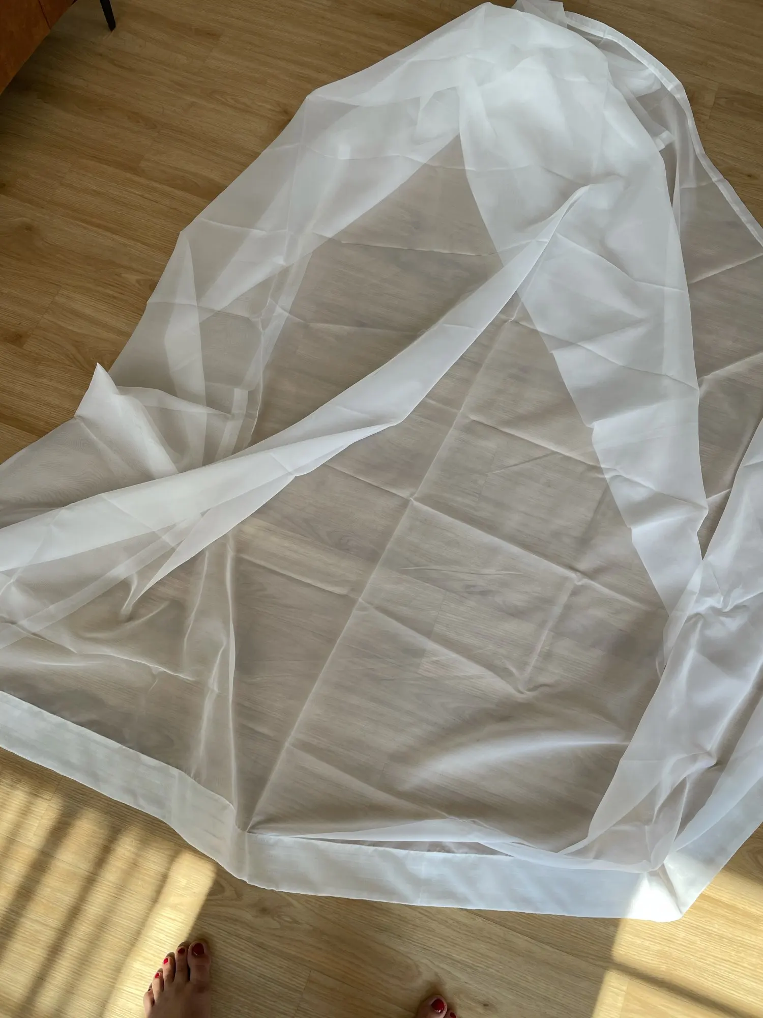 belle ! devo fare solo l orlo ottimissimo rapporto qualità prezzo sono luminose ed il tulle è bello consistente ottime!