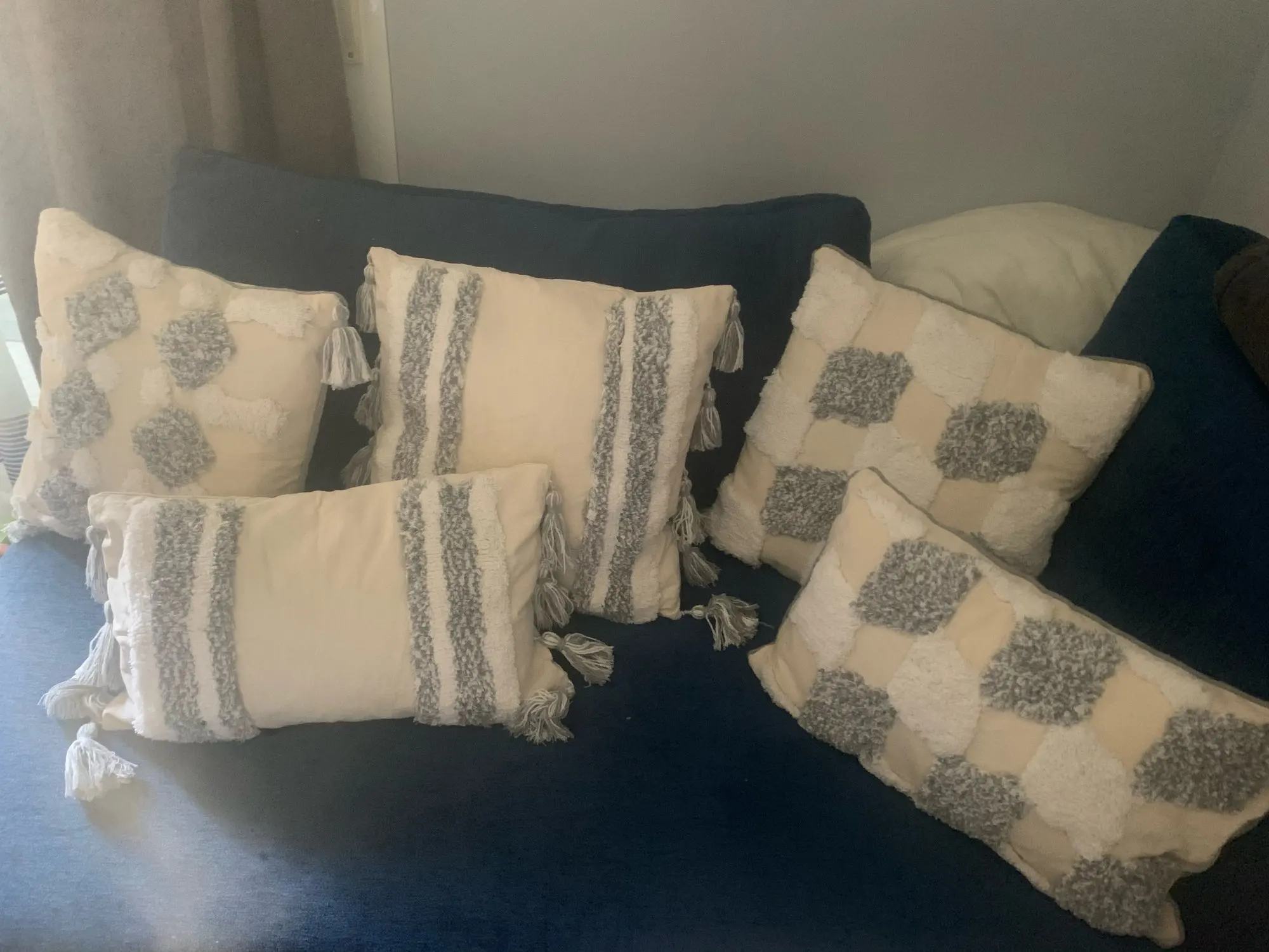 Me ha sorprendido para bien la calidad de las fundas. Tela gruesa, con cremallera. Aunque tengo que comprar rellenos del tamaño adecuado pero dejo foto provisional para que se vea el efecto. Son preciosos! Gran calidad/precio. Han tardado un mes +- en llegar.