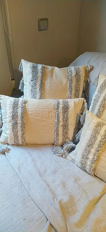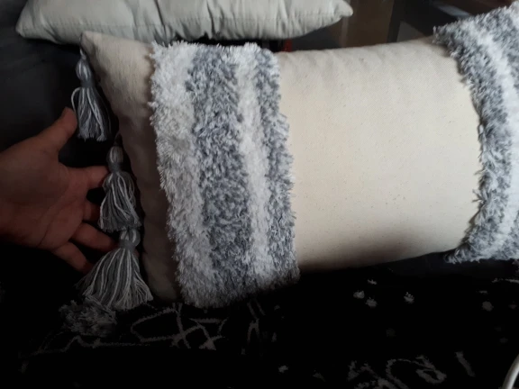 -W przypadku poduszek z frędzlami, zaleca się pranie ręczne. Pierwsze czyszczenie może mieć pływającą tkaninę, co jest normalne.