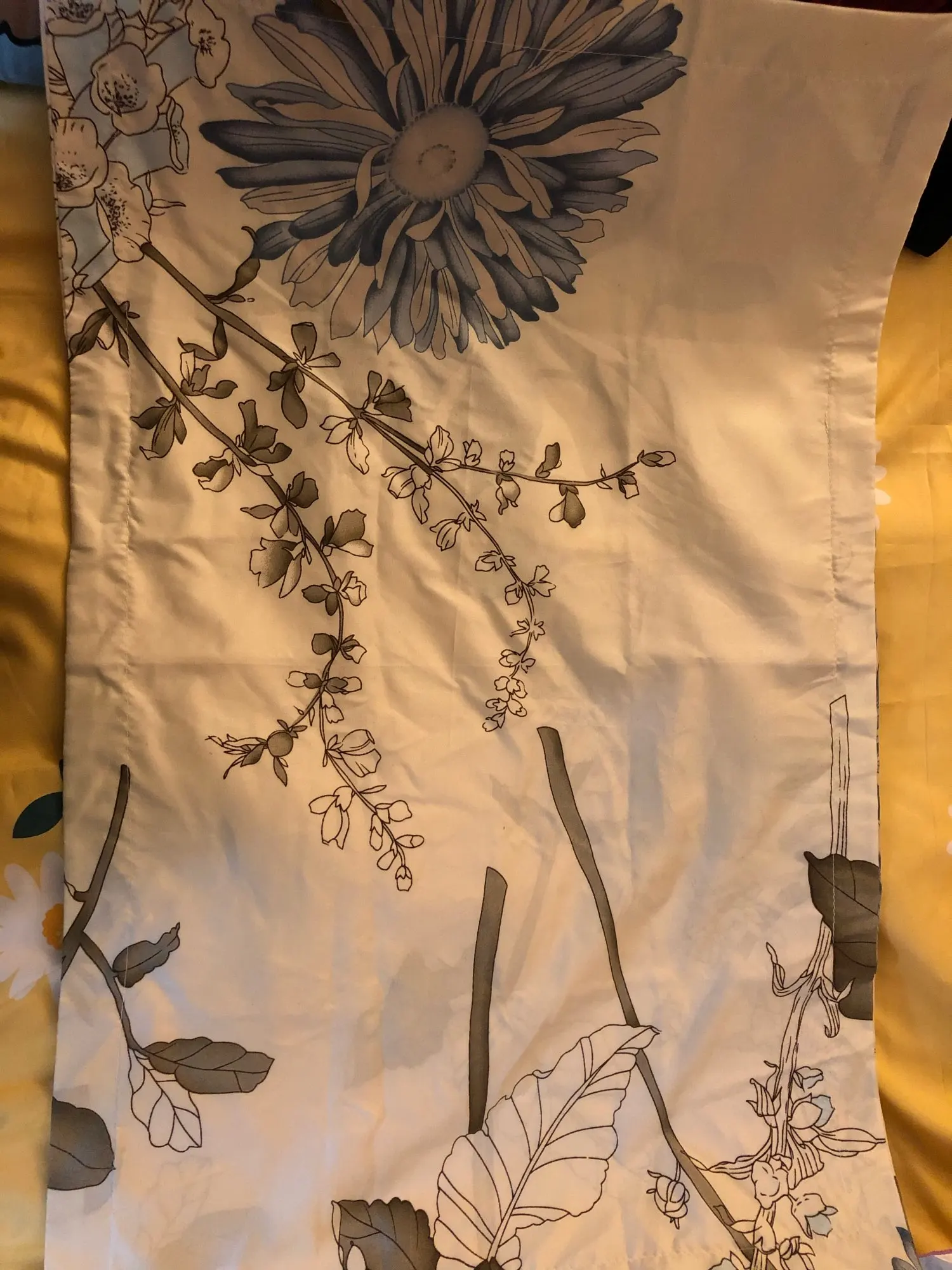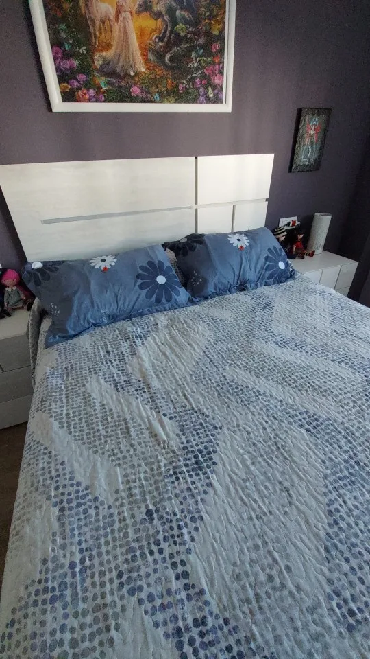 Посылка шла почти 3 недели. По сравнению с моей постелью, наволочка бледненькая. На фото видно хорошо.