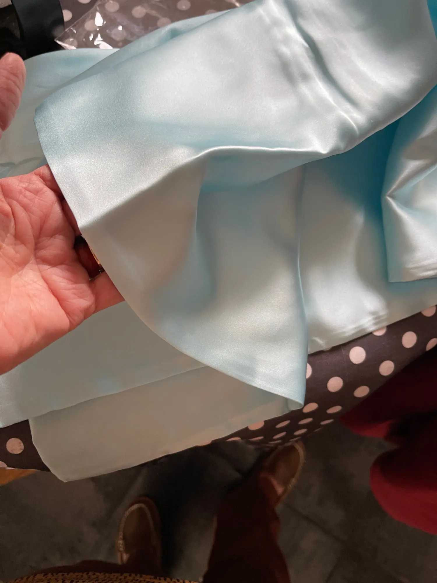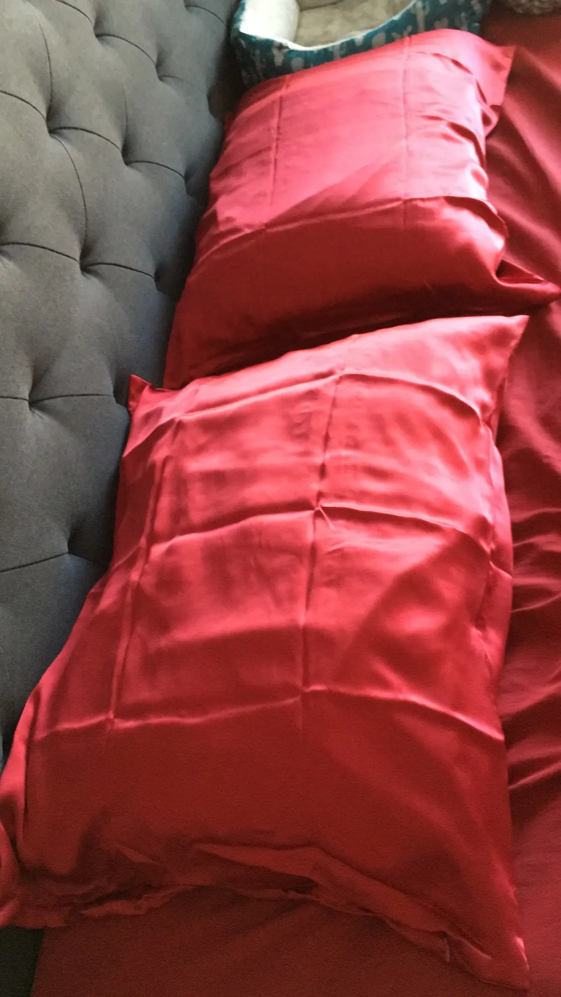 По ощущению- натуральный шелк. Цвет насыщенный. Дошло очень быстро! При первой ручной стирке немного окрасило воду, но не критично. Наволочки хорошие!