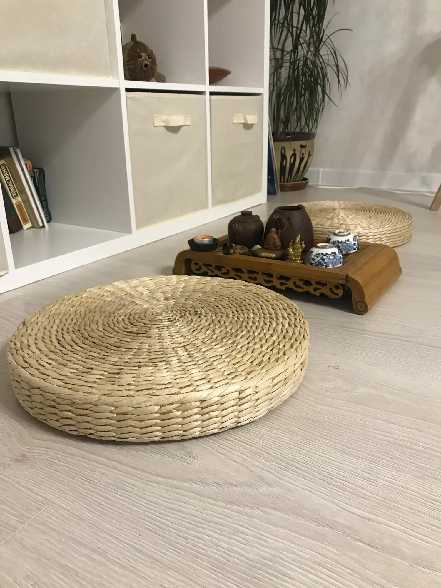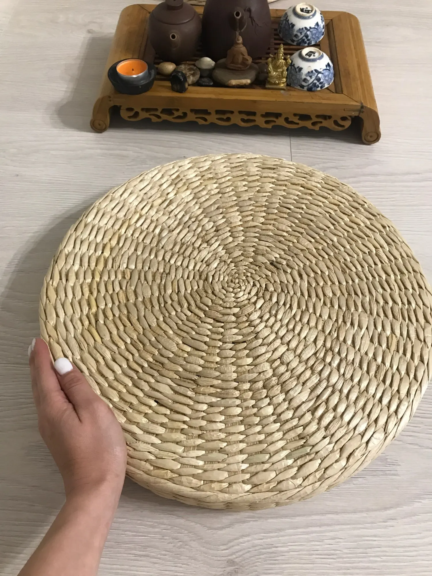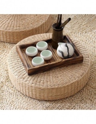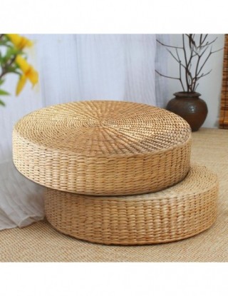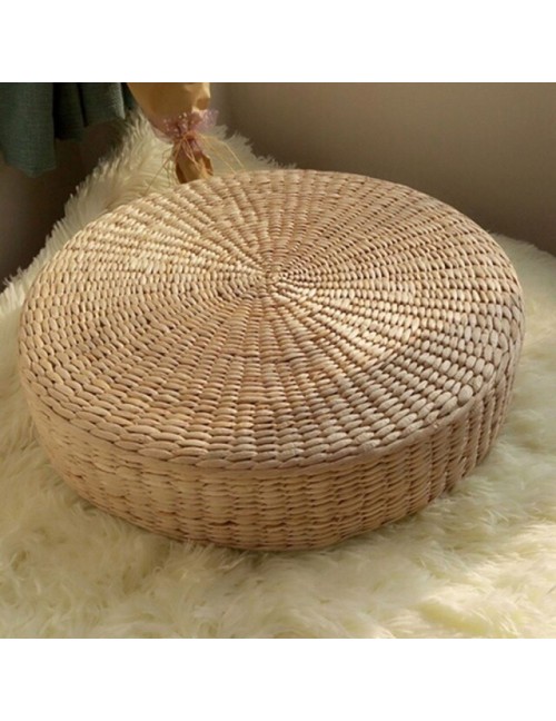 Hot 40cm * 40cm naturalna słoma okrągła pufa poduszka Tatami splot ręcznie robiona poduszka podłogowa styl japoński poduszka z jedwabną watą