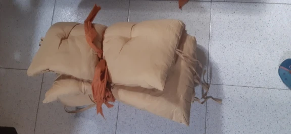 Poduszka na siedzenie ma krawaty, aby bezpiecznie przymocować ją do krzesła, niełatwo się zsunąć.