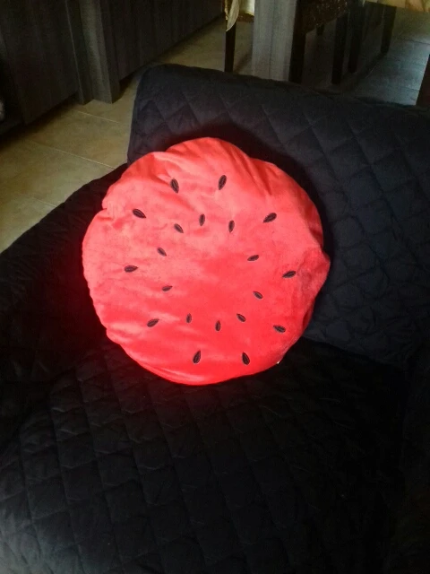 colores vivos y bonitos. bien confeccionado. trae una pequeña cremallera por si quieres sacar el relleno para lavarlo.