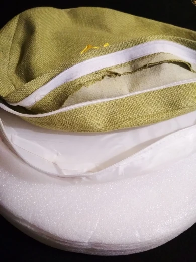 Подушка шла около 3 недель. Состоит из трёх частей: внешний чехол из плотной симпатичной ткани, внутренний чехол из тонкой подкладочной, и основы материала положено на пенопрлпилен (ППЭ, НПЭ)...(не очень разбираюсь в разнице этих материалах). Подобный видел в чехле для телефона для транспортировки транспортировки и в борцовском мате. Подушка очень плотная. Сидеть комфортно! Под гантелей 12кг не прогибается)) Единственное, что расстроило, это качество молний! Заедают обе. На одной из них явный дефект. Ну да ладно, подушка понравилась, поэтому авансом 5 баллов. Спасибо