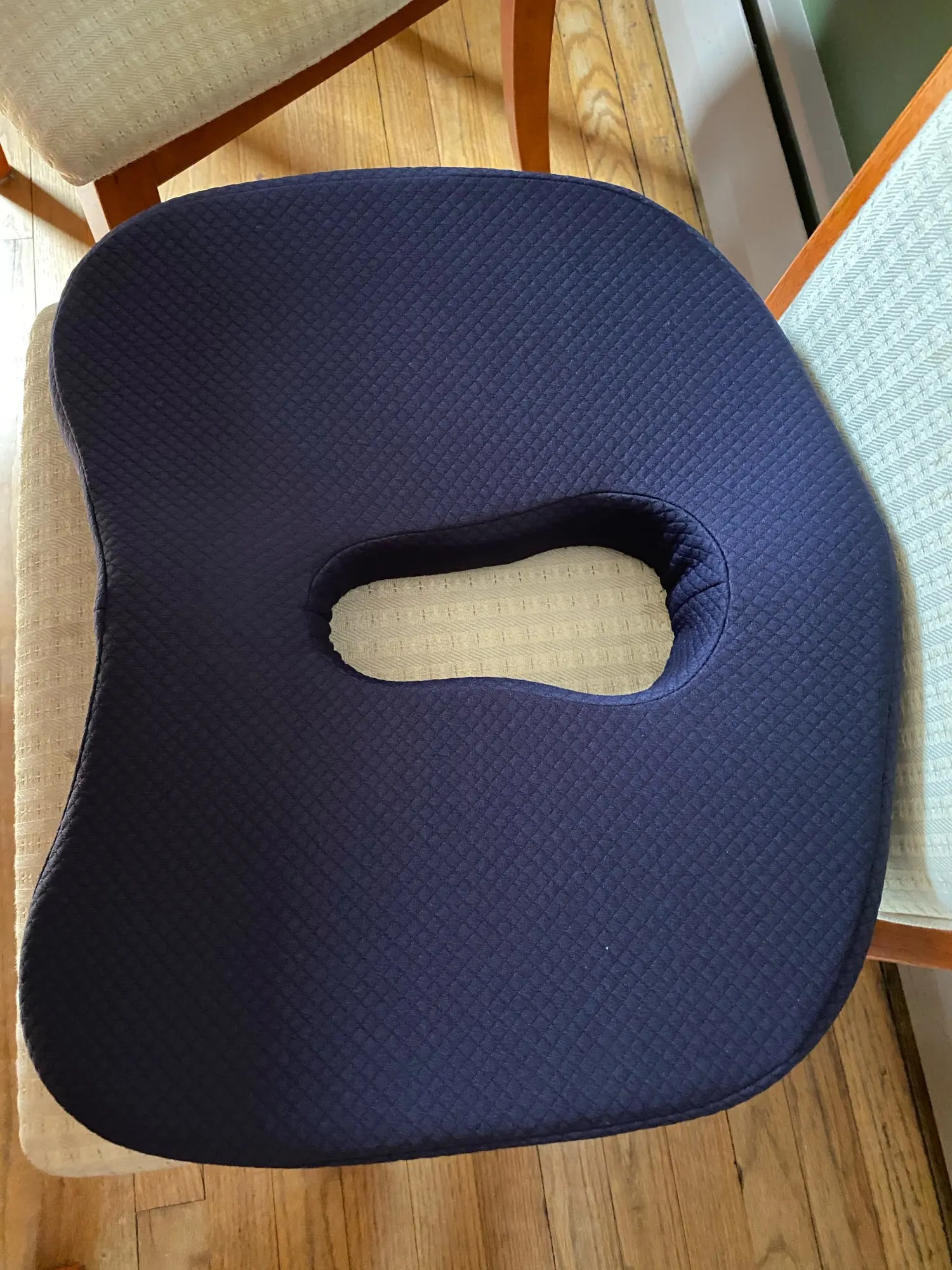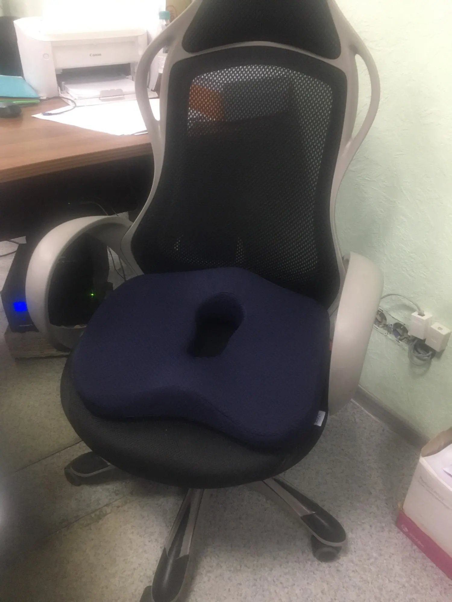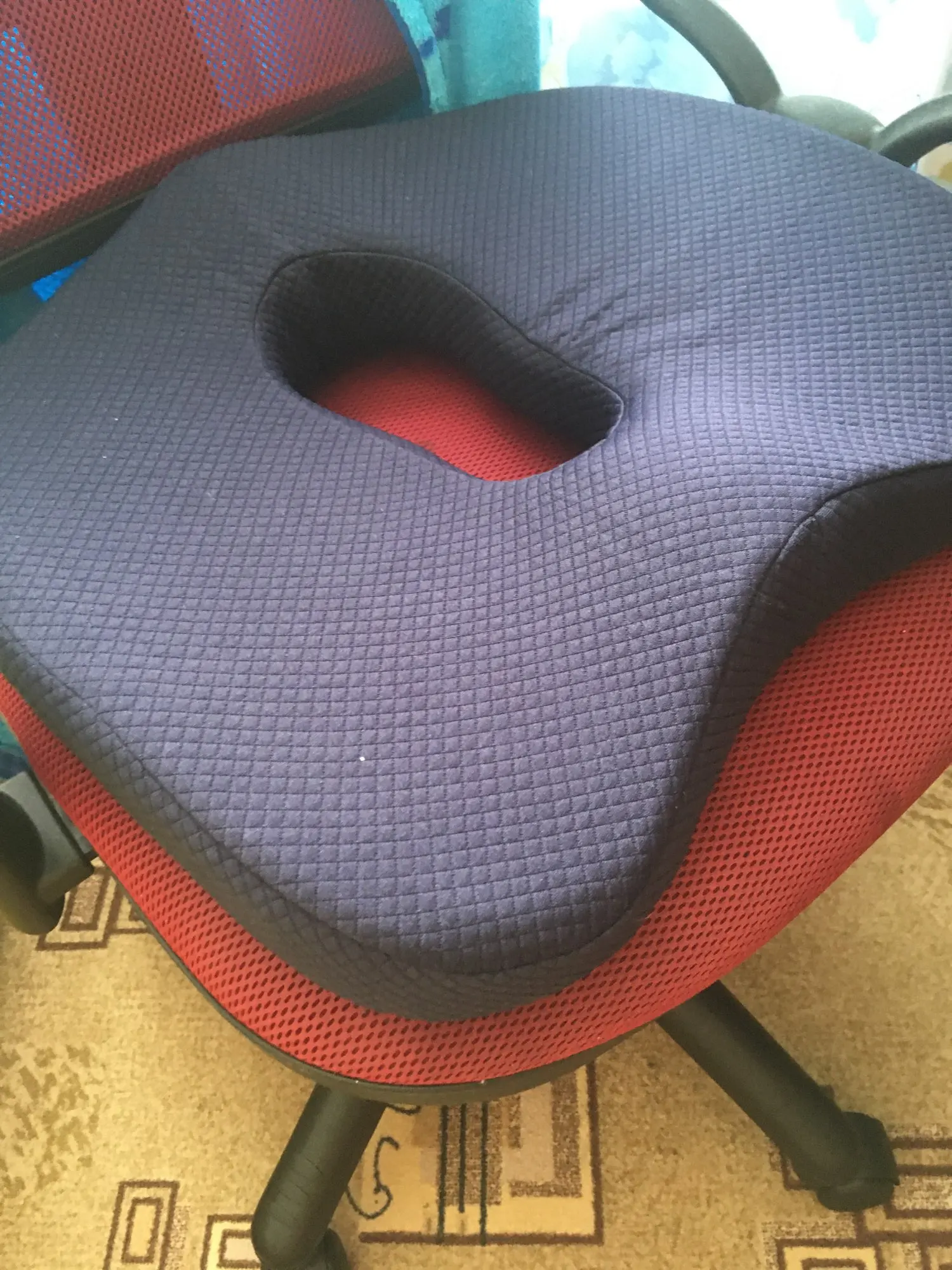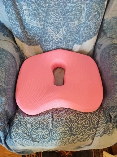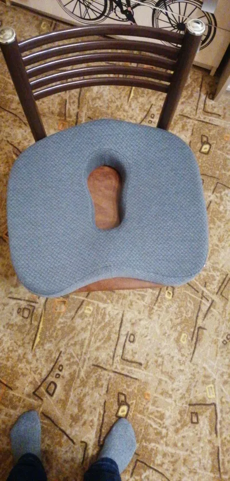 Очень удобная подушка, чехол снимается. Благодаря отверстию при обострении геморроя можно сидеть без боли