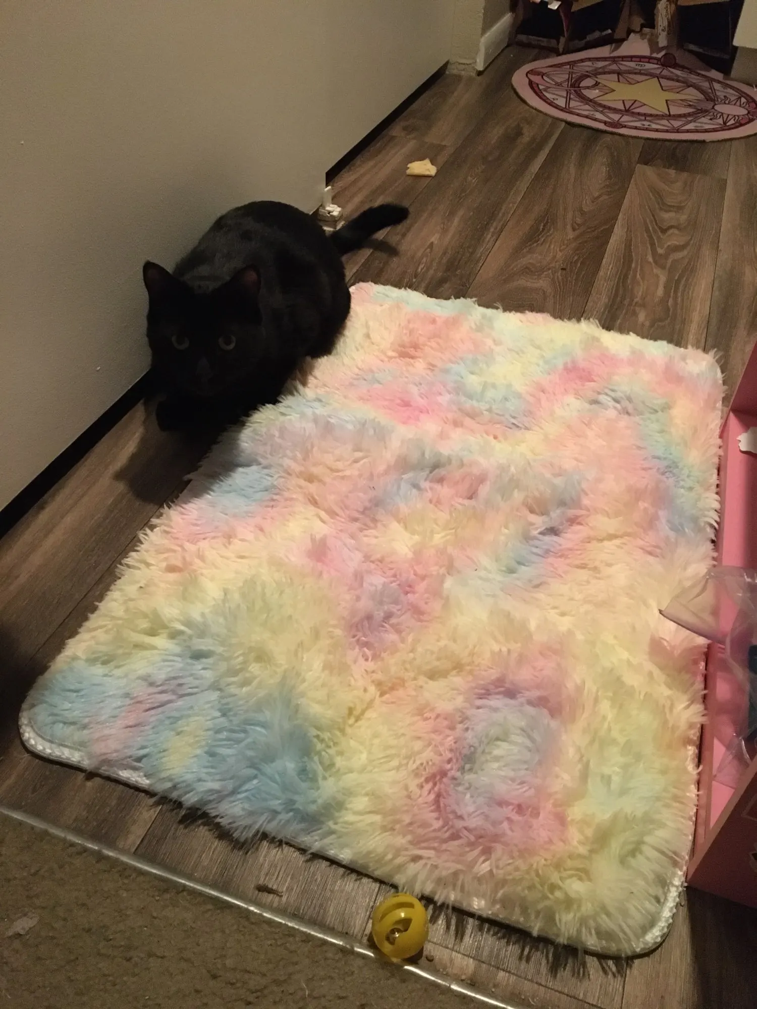 it’s super soft & plush plus pretty thick so it feels heavenly to step on. the colors are vibrant and gorgeous as well. even my cat loves it (: