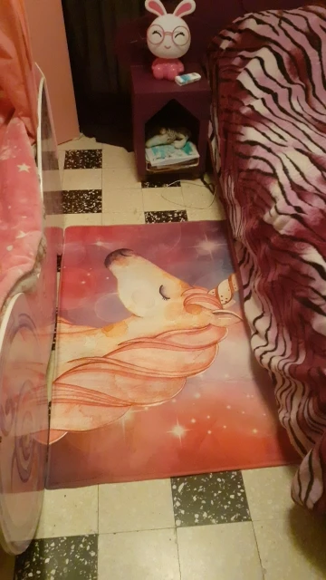 La alfombara está muy bien, igual que la foto. el tacto es muy suave y el grosor está bien. Llega marcada con los dobleces pero creo que se quiten