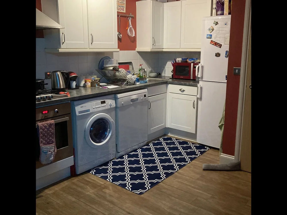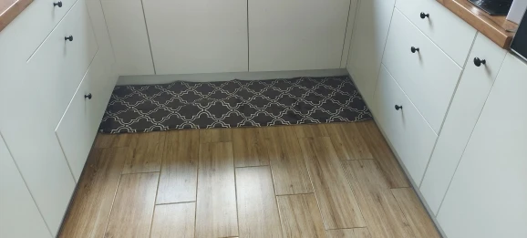 Exactly what i was looking for the measurements were what i planned and it fits perfectly reaching from the stove to the sink where we spend all the time in the kitchen. The mat has a cushion to it so it will be great on my feet and the material is a kind of velvet so its super soft and comfy compared to standing on the hard tile