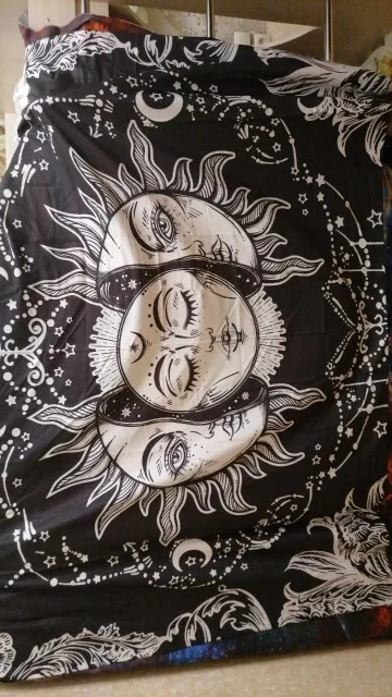 Czarne słońce księżyc Mandala Tapestry Wall Hanging niebiański gobelin ścienny ozdoba ściany Hippie dywany ścienne czeski gobelin psychedeliczny