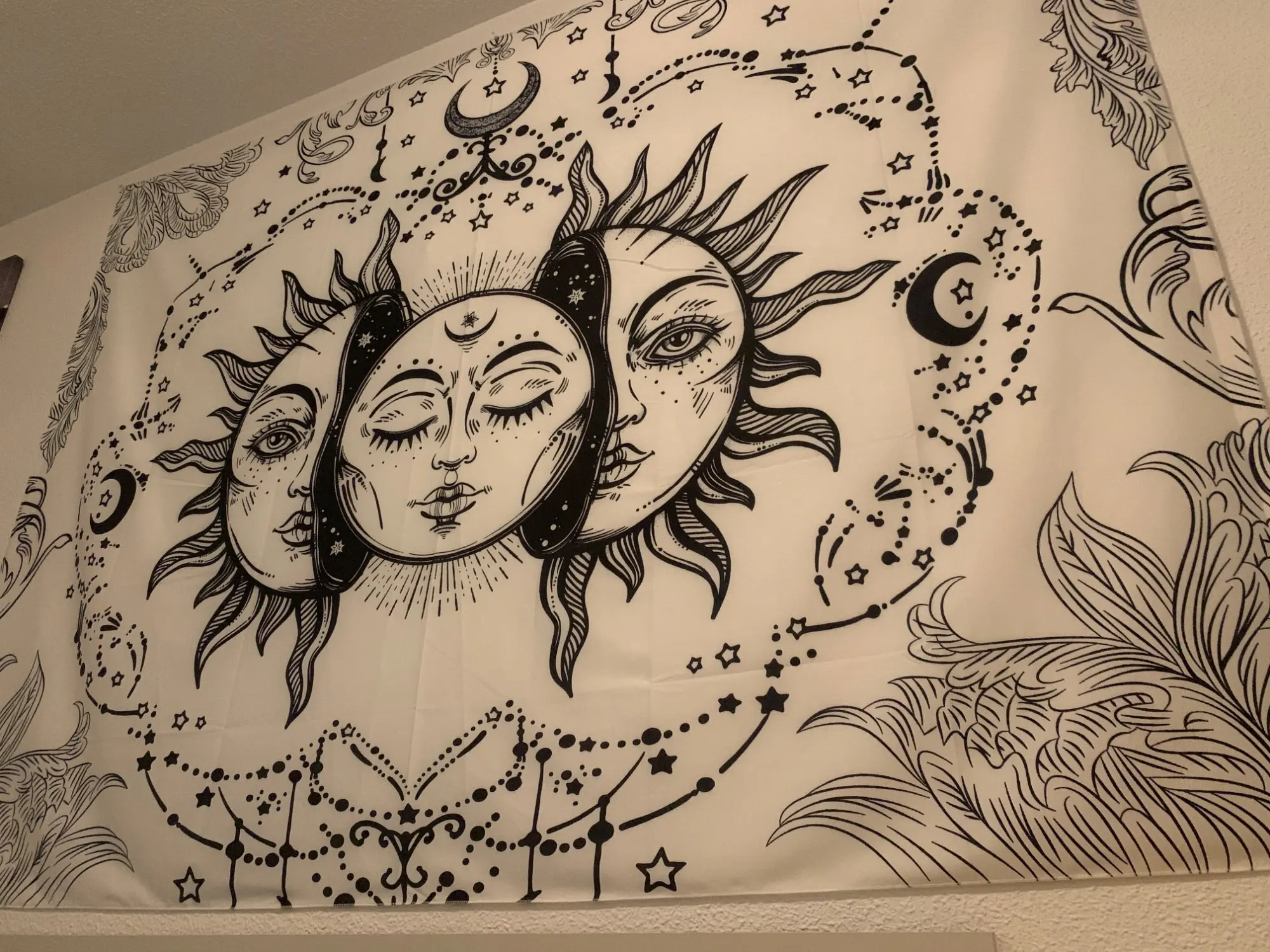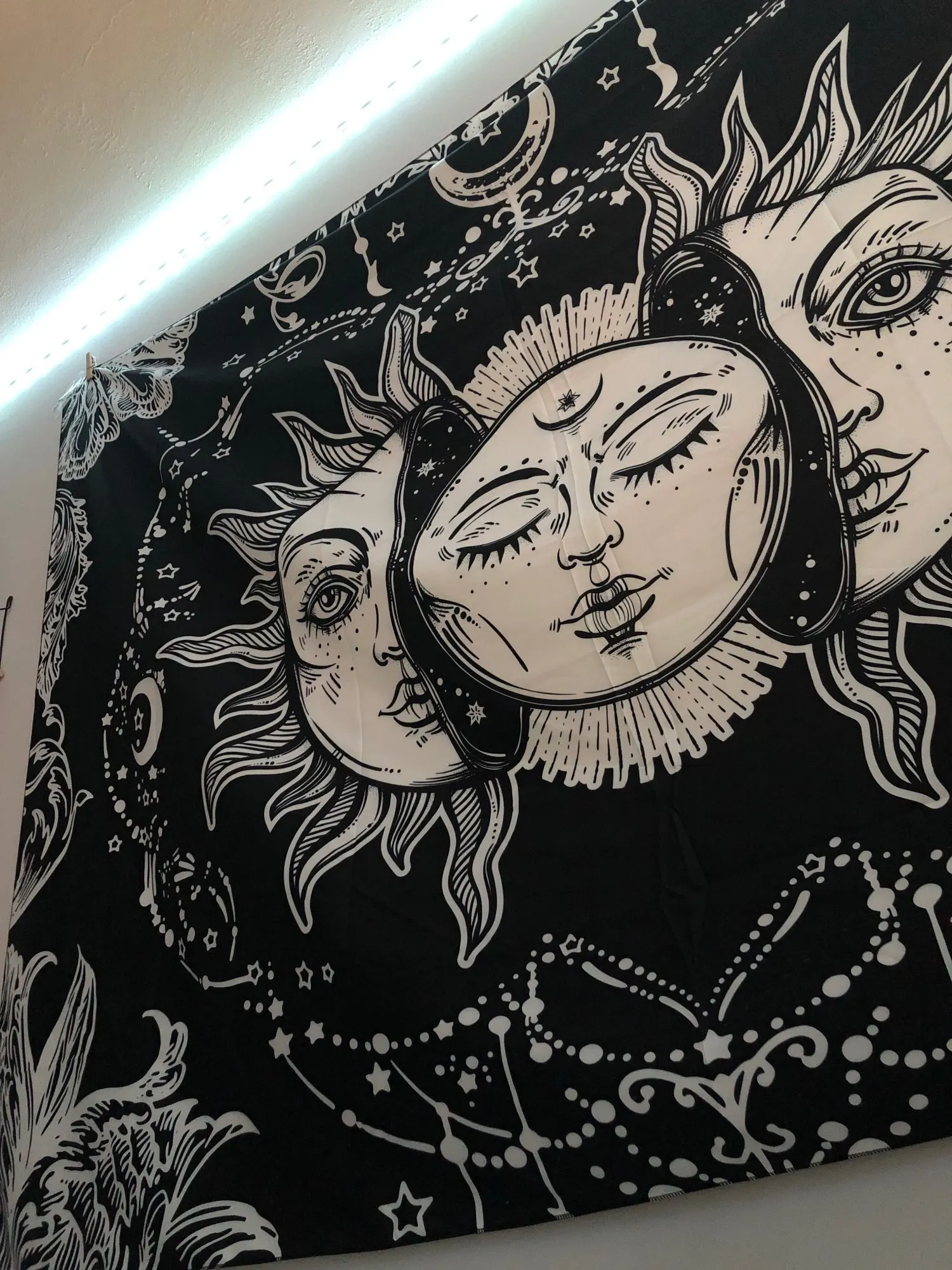 Biały czarny słońce księżyc Mandala gobelin ścienny wiszący niebiański gobelin ścienny ściana hipisowska dywany dekoracja do sypialni gobelin psychedeliczny