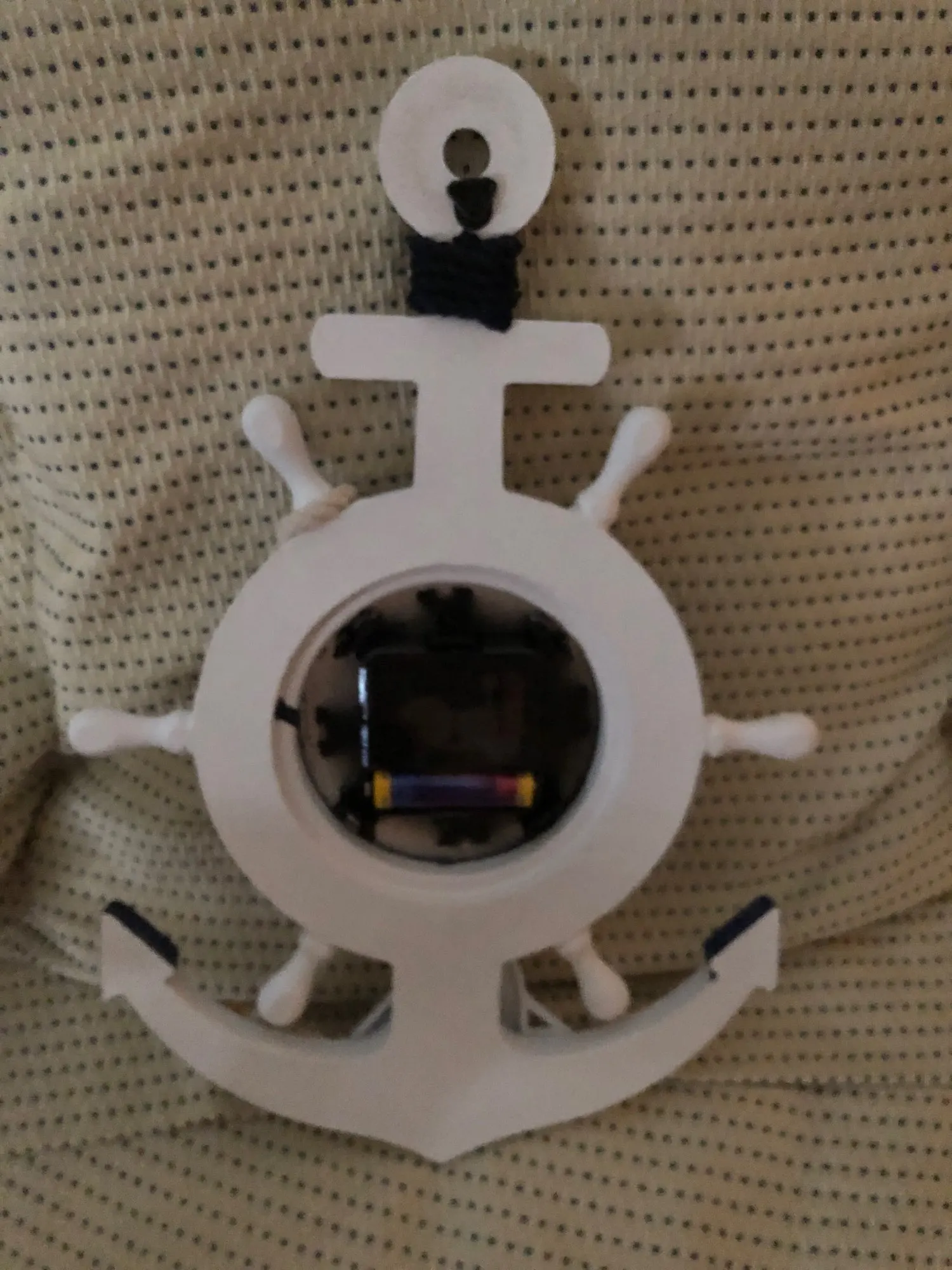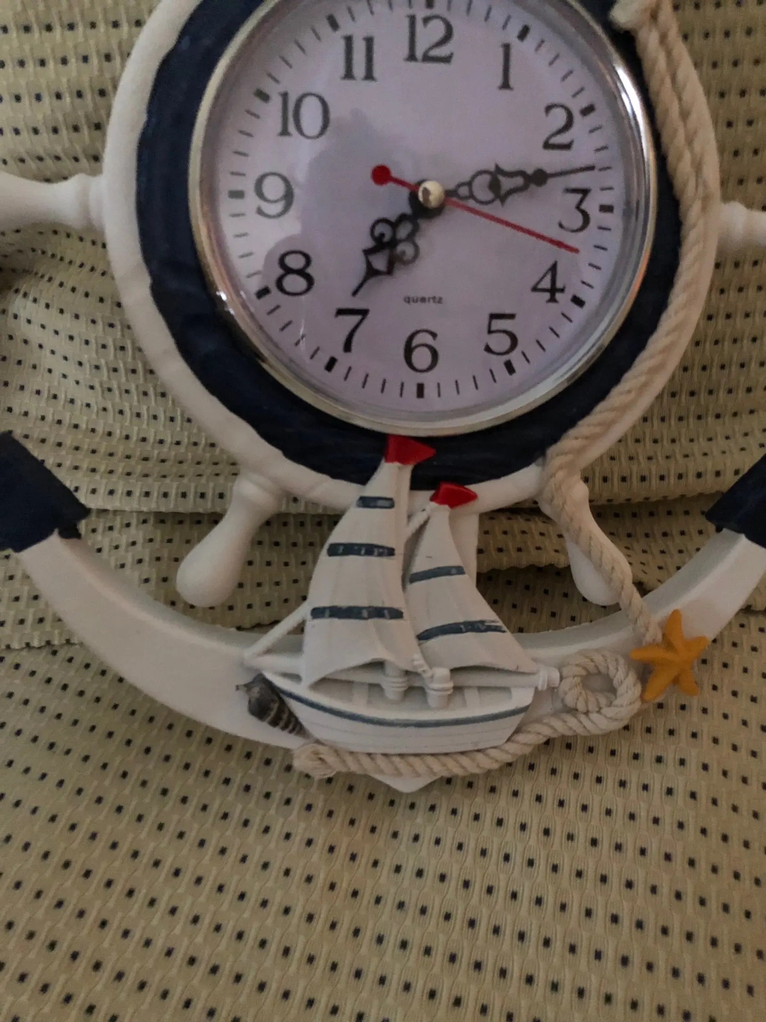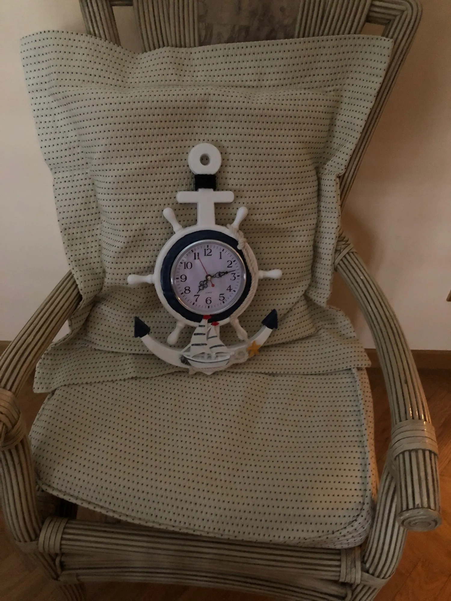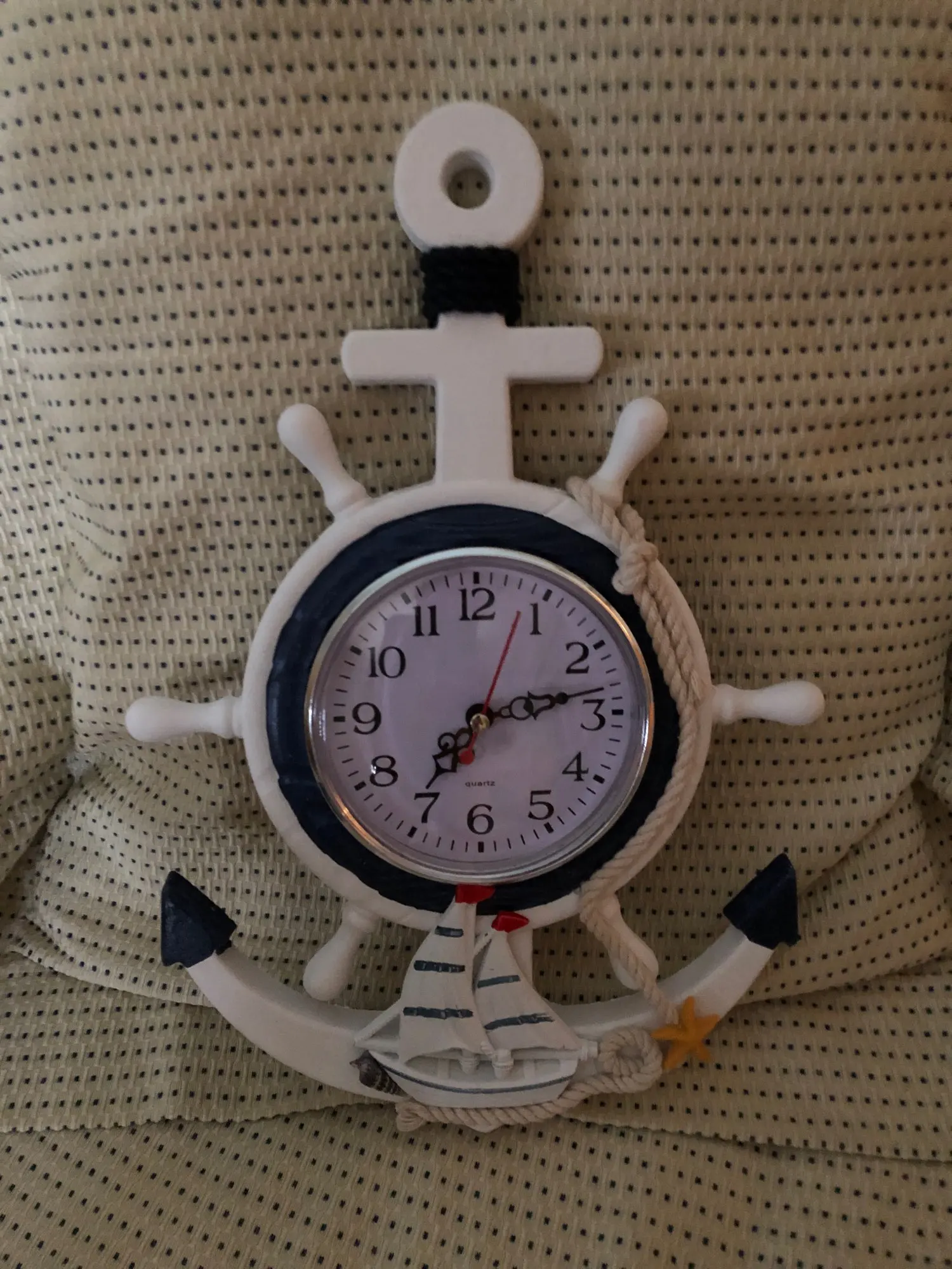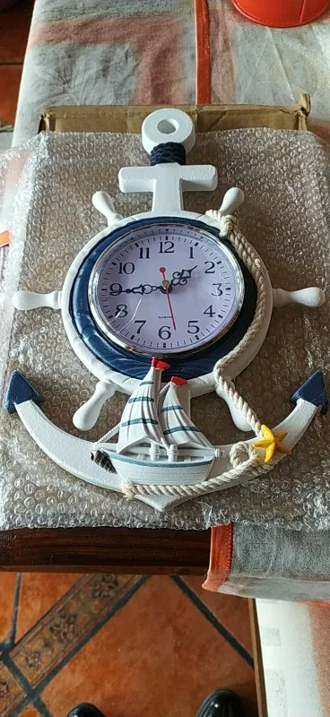 Ten przedmiot jest wykonany z najwyższej jakości materiału z dekoracją linową, która jest antyutleniająca i wodoodporna, aby zapewnić trwałe użytkowanie. Znakomity śródziemnomorski design z wystrojem kotwicy i łodzi sprawia, że wygląda świeżo i uroczo. Jest to zarówno praktyczny, jak i piękny zegar ścienny, który może być również używany jako ozdoby do sypialni, kuchni, holu, przedpokoju itp.1 * kotwica zegar plaża motyw morski morskie koło okrętowe ster kierownica Decor ozdoba do powieszenia na ścianie