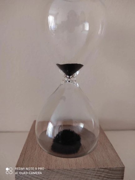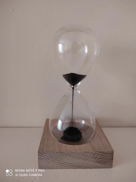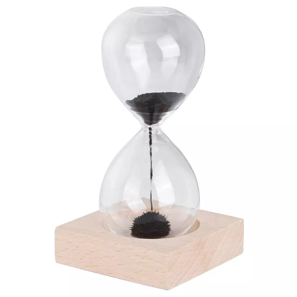 Магнитные песочные часы. Они скорее декоративные : интересно наблюдать как собирается колючий шарик. Железная стружка высыпается довольно быстро, изначально ее лучше установить под наклоном, во избежание "зависания" стружки в верхней части. Заказом довольна.
